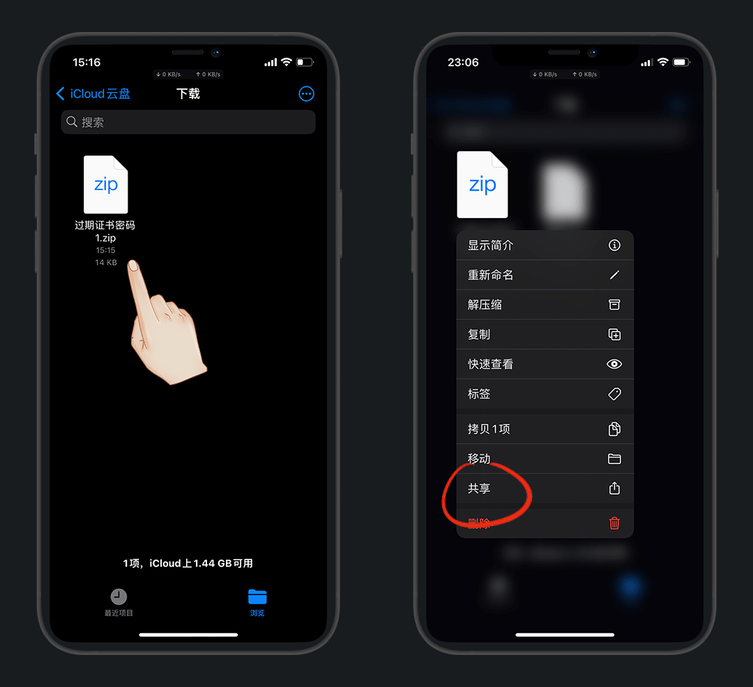 长按压缩包,共享