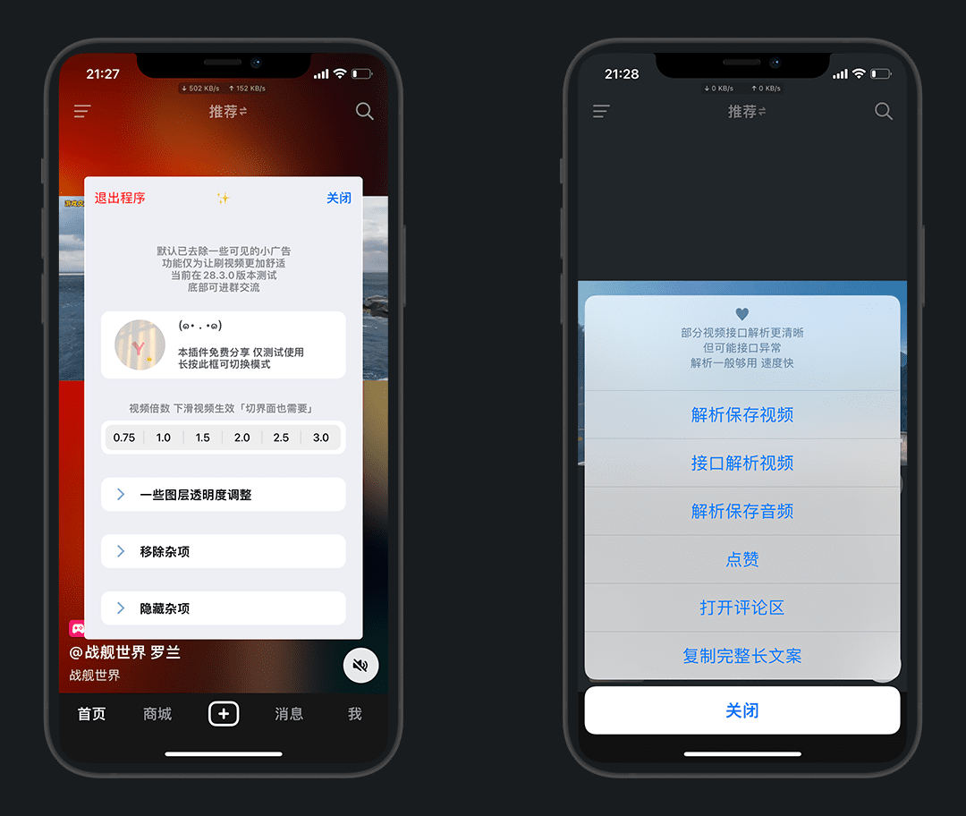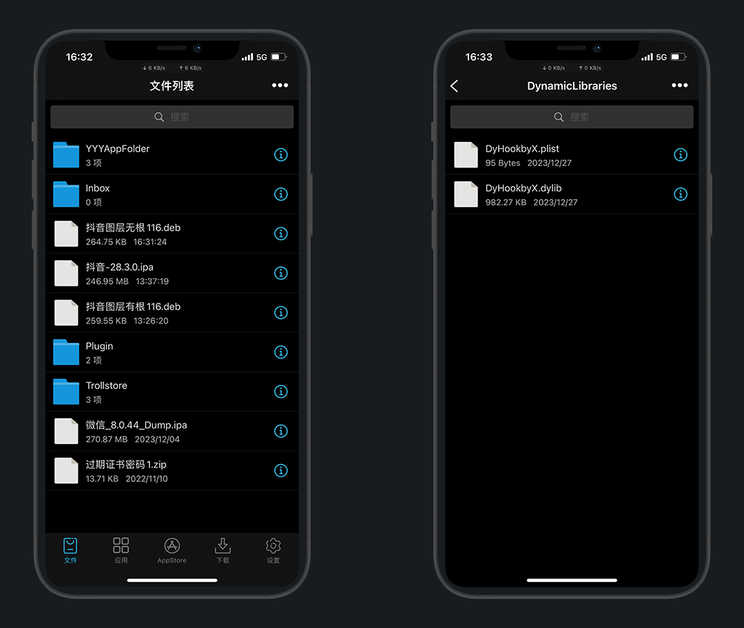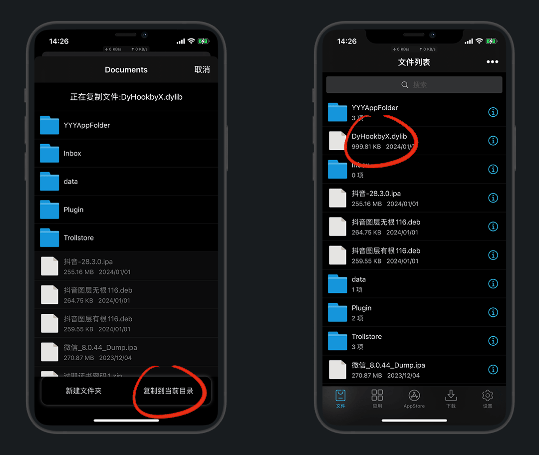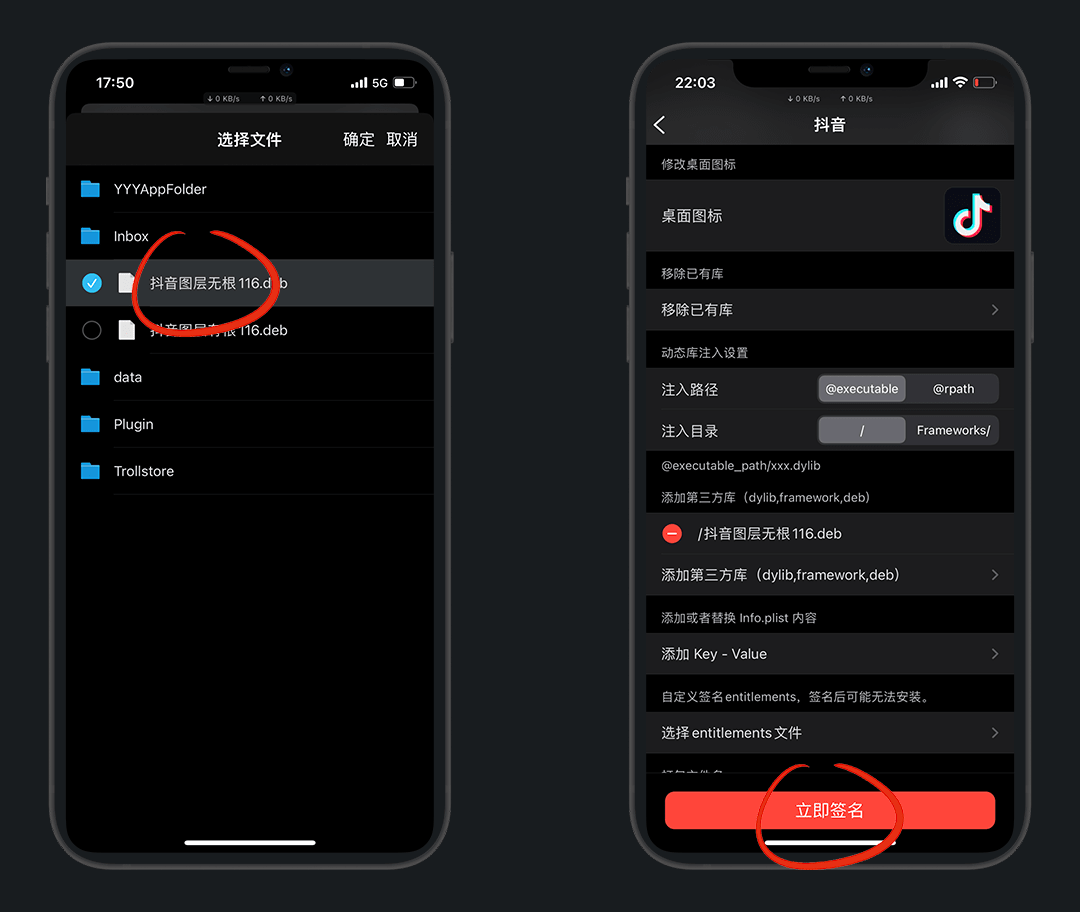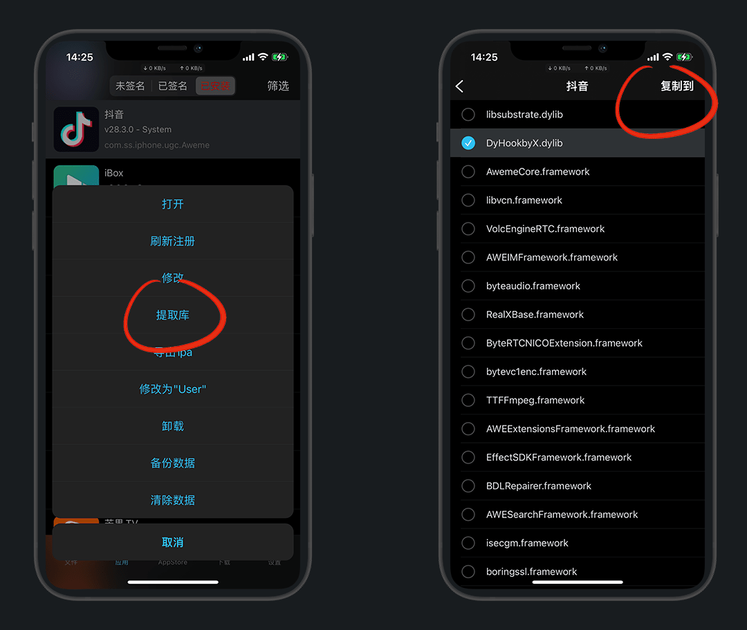 需要先准备已砸壳好的应用和插件,本次以 抖音 为例