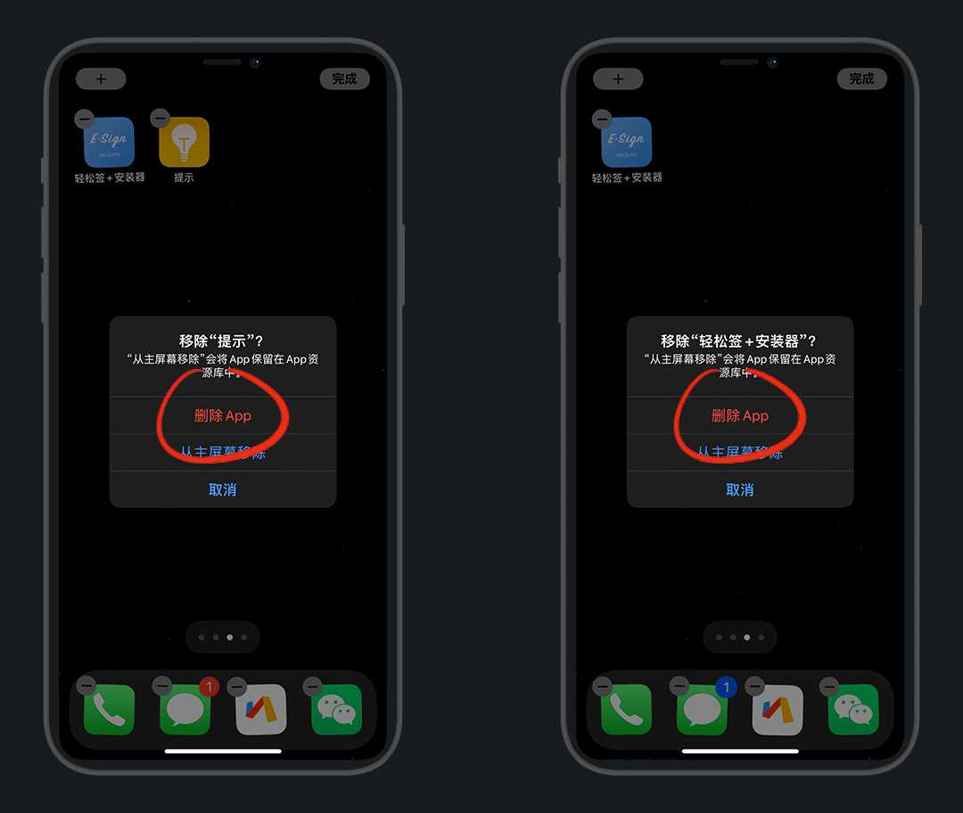 最后,卸载提示和安装器App即可