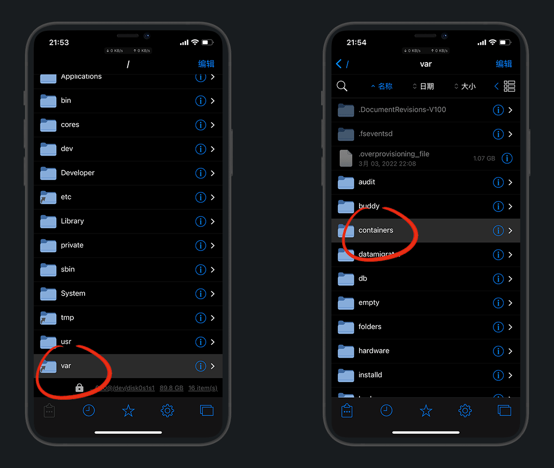 进入 Filza 目录 /var