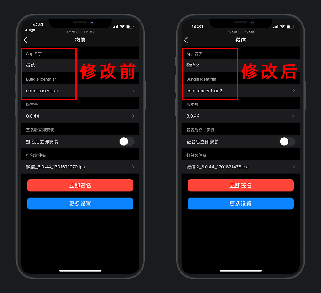 我们通过修改应用ID,就变成了两个完全独立的App,可共存安装,也就是多开