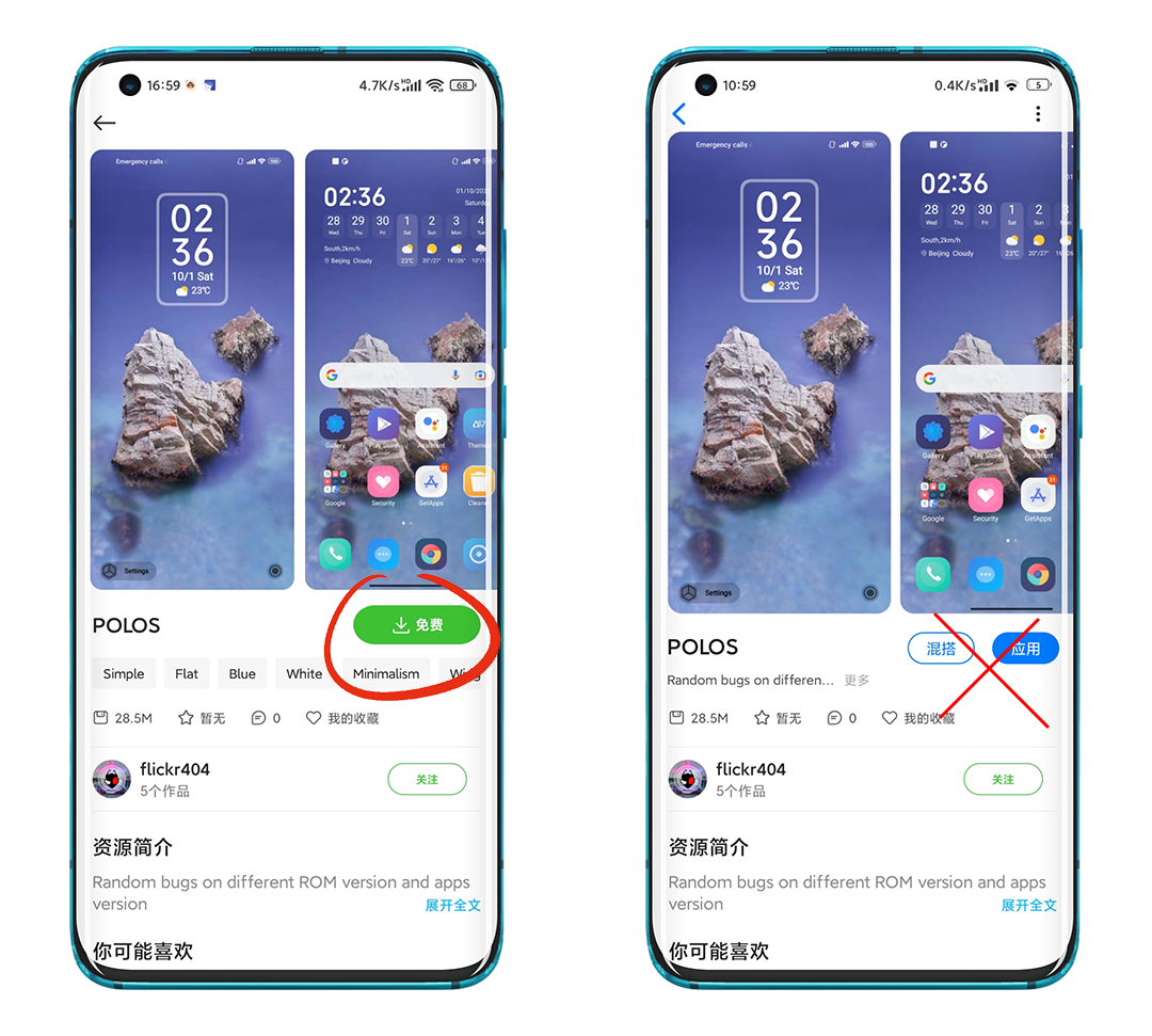 长按勾选国内版主题商店 - 选择安装狮-Shizuku