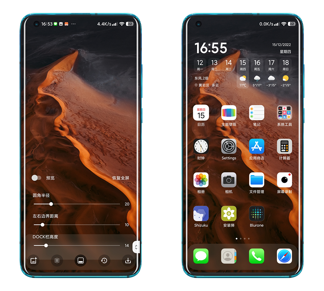 底部dock栏使用 Blurone 即可,很简单调整参数保存即可