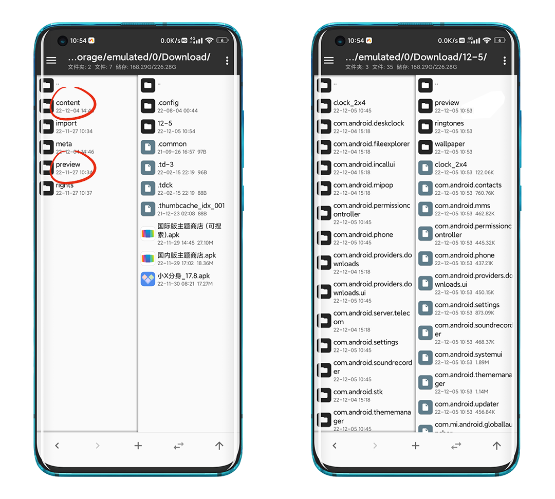 把 content 和 preview 两个文件夹都复制放到 Download 里(方便查看和导入)