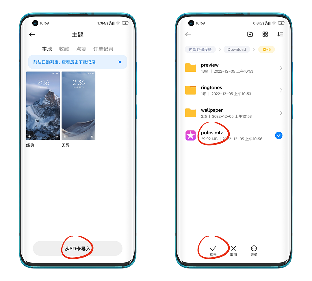 回到我的主题,从SD卡导入,选择 Download 刚刚导出的 *.mtz 主题包