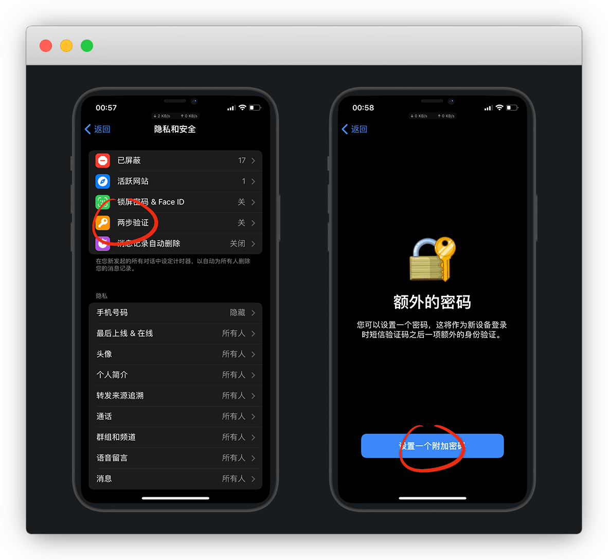设置 - 隐私与安全 - 两步验证,设置一个额外密码