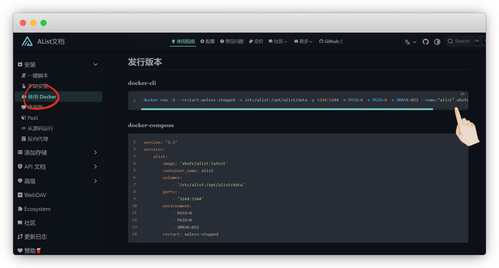 官方安装文档:https://alist.nn.ci/zh/guide/install/docker.html