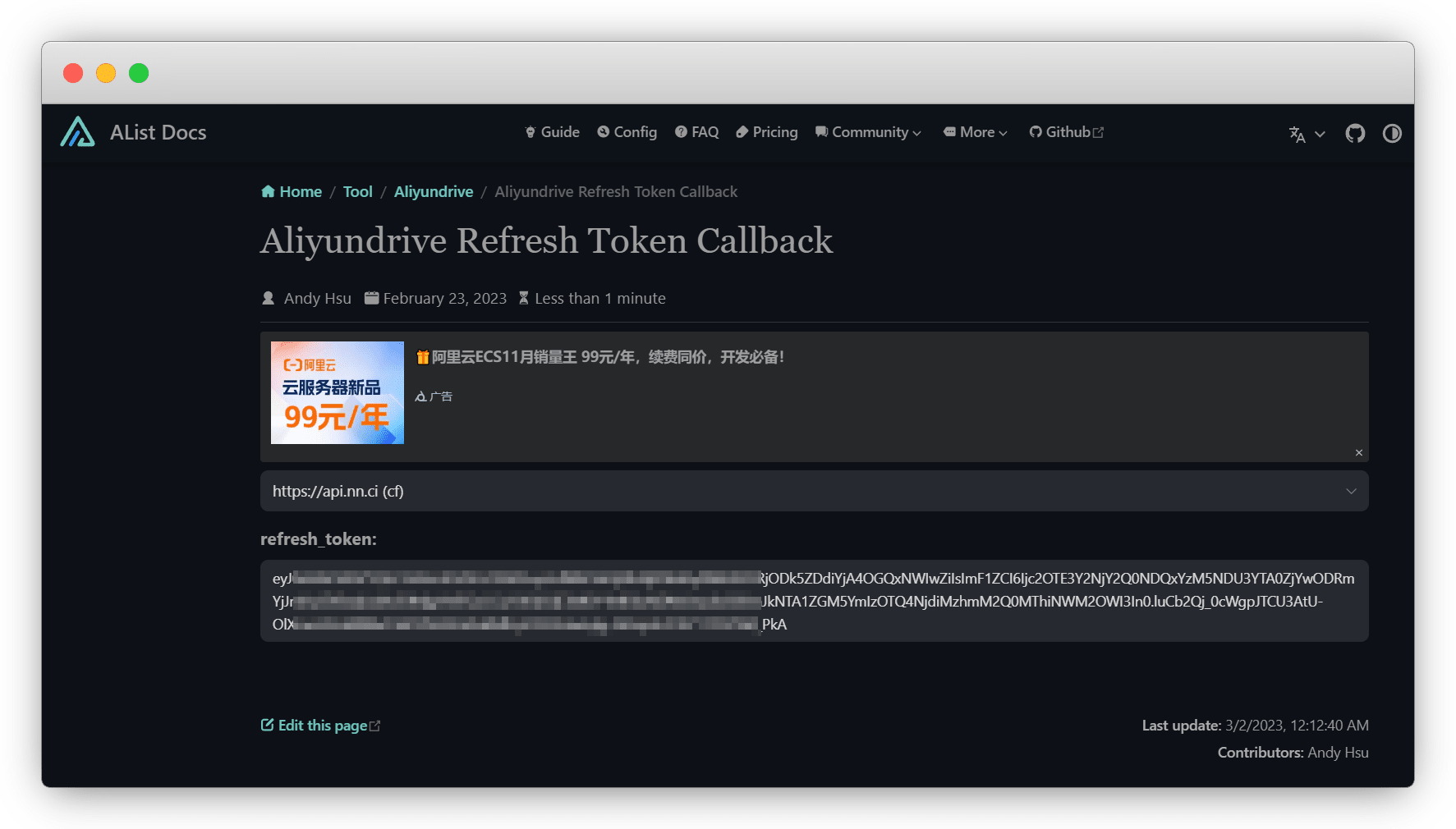 先去获取令牌:https://alist.nn.ci/tool/aliyundrive/request