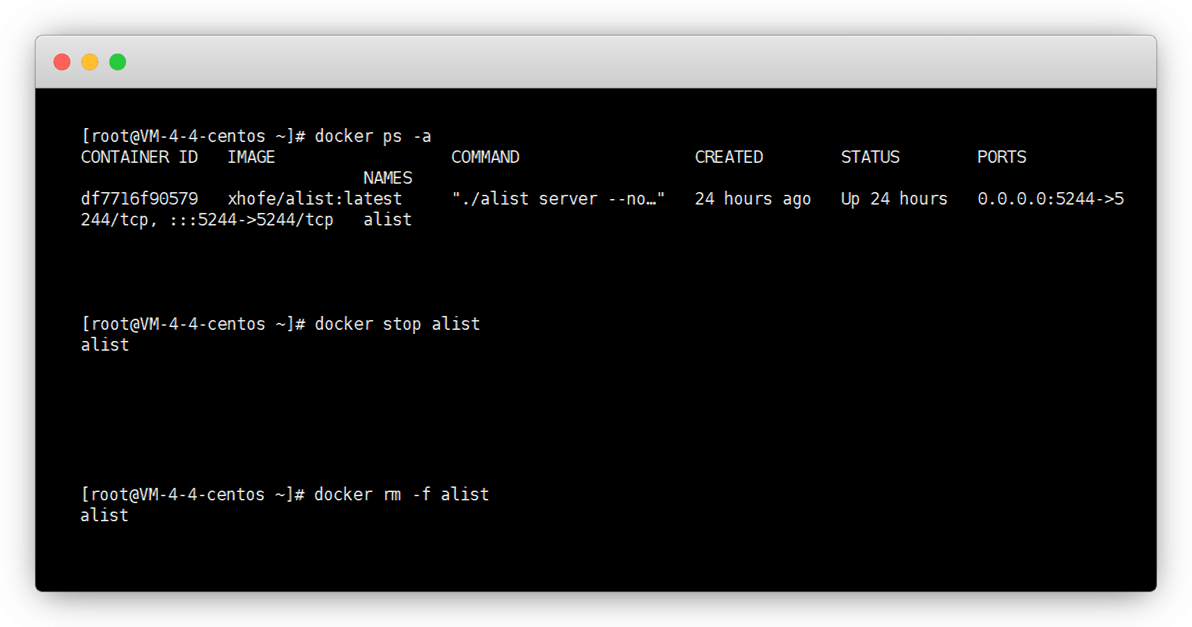 docker pull xhofe/alist:latestdocker run -d --restart=unless-stopped -v /etc/alist:/opt/alist/data -p 5244:5244 -e PUID=0 -e PGID=0 -e UMASK=022 --name="alist" xhofe/alist:main如何彻底卸载