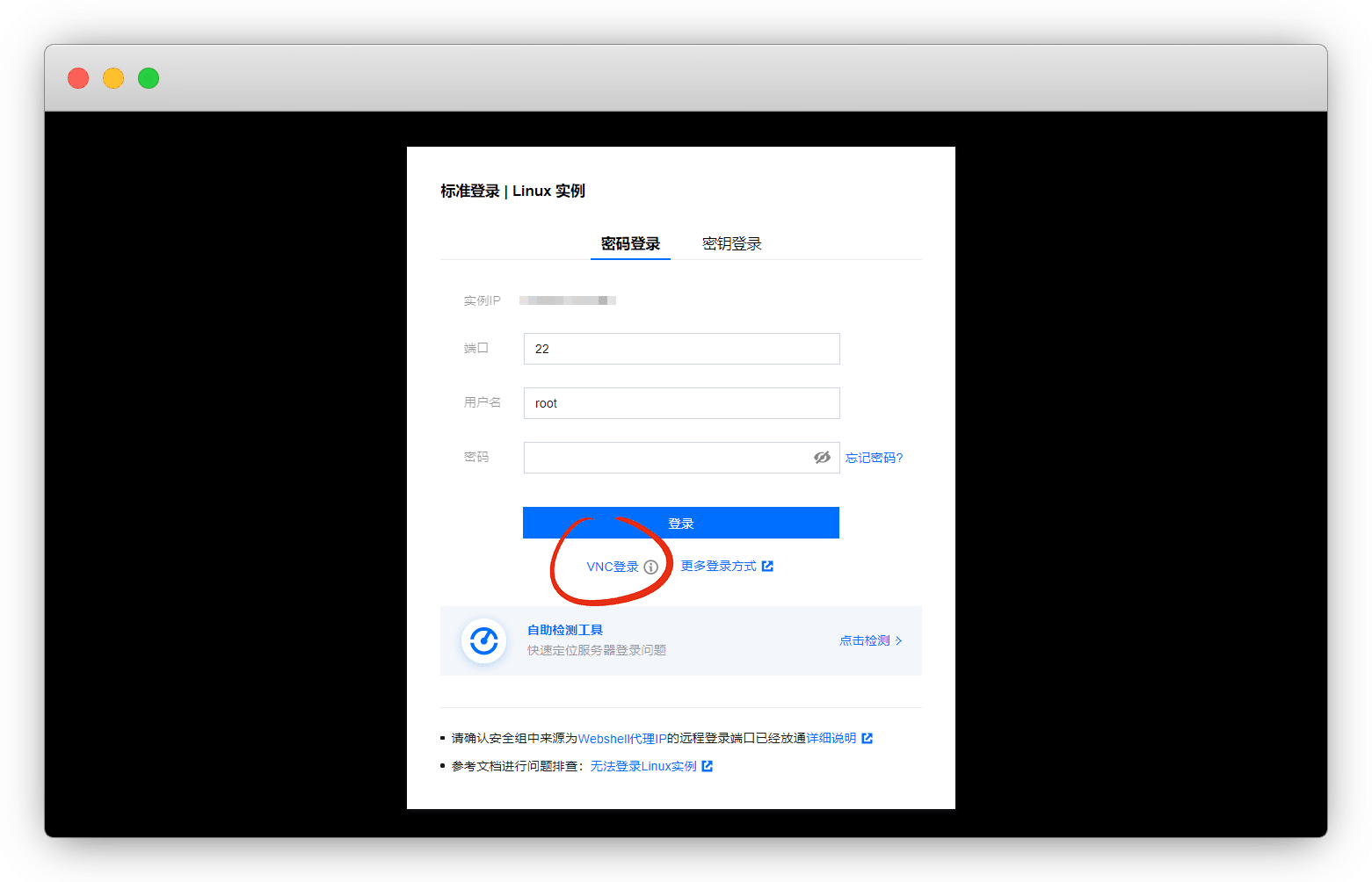 选择下方的 VNC登录