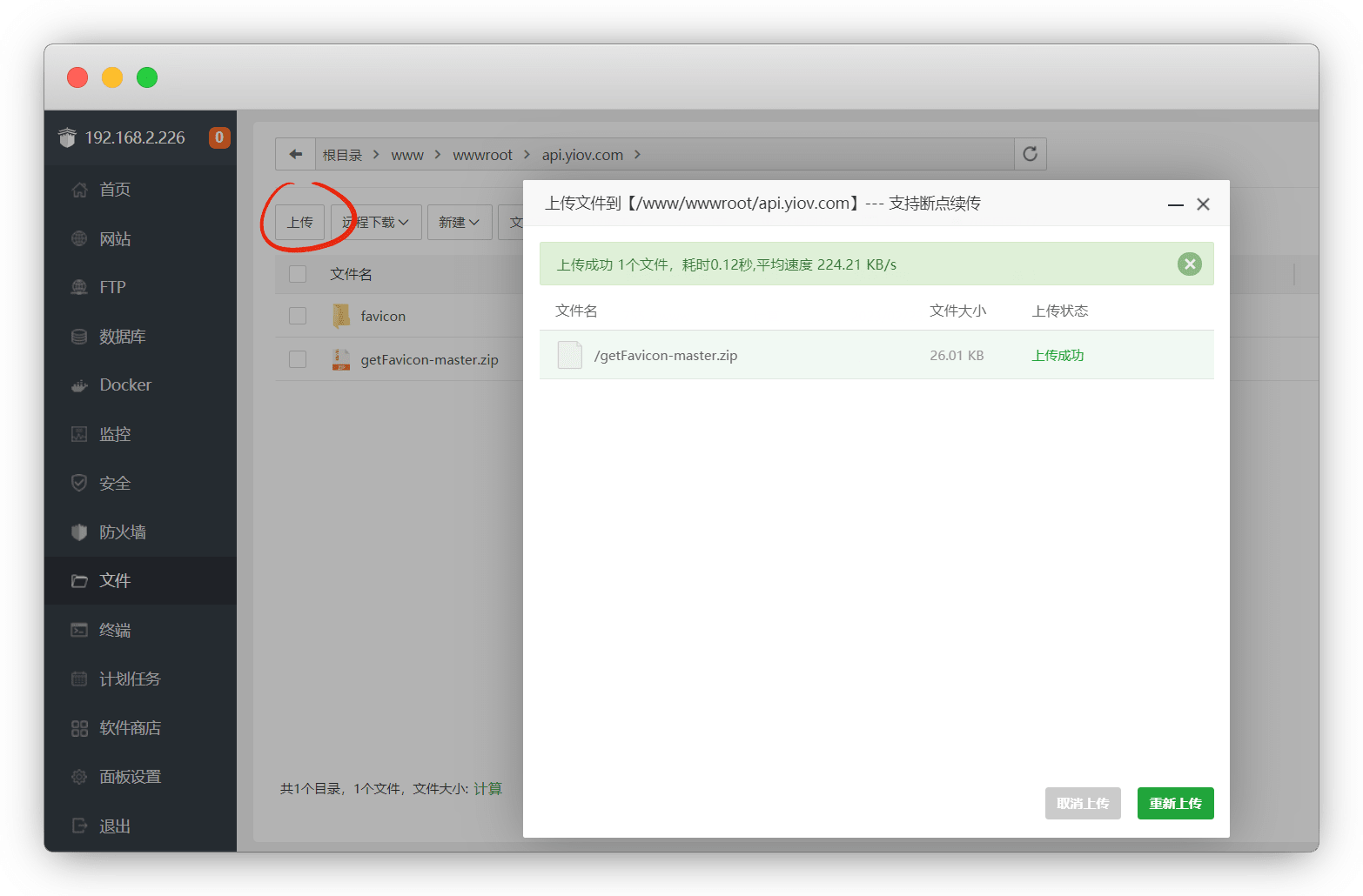 登录宝塔,新建添加一个站点,进目录-上传压缩包-解压,并将文件名改成 favicon