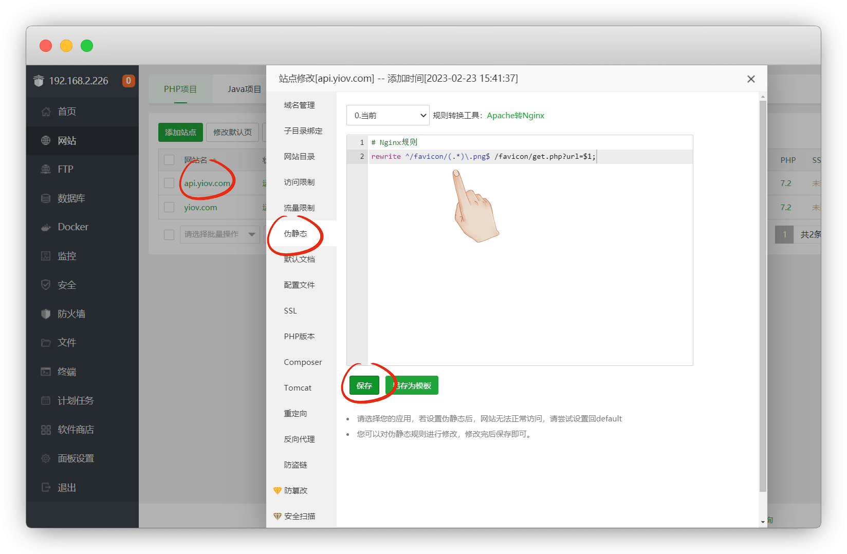 域名 - 伪静态,粘贴保存