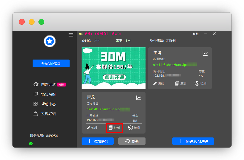 然后你不能退出软件,一整天都要挂着,否则会断开映射,最糟心的是这个