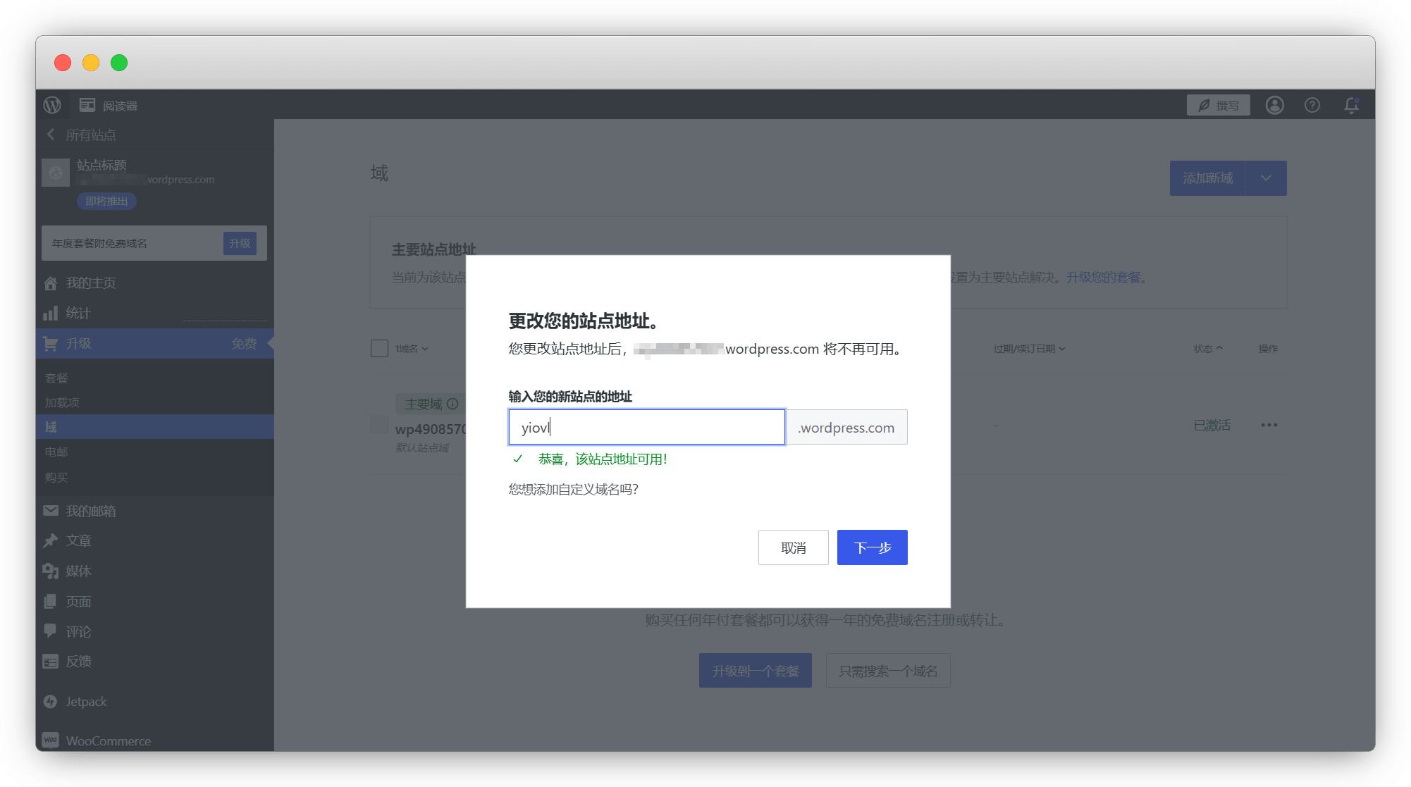 你的用户名.wordpress.com,用户名可更改SSL证书:Sectigo Limited