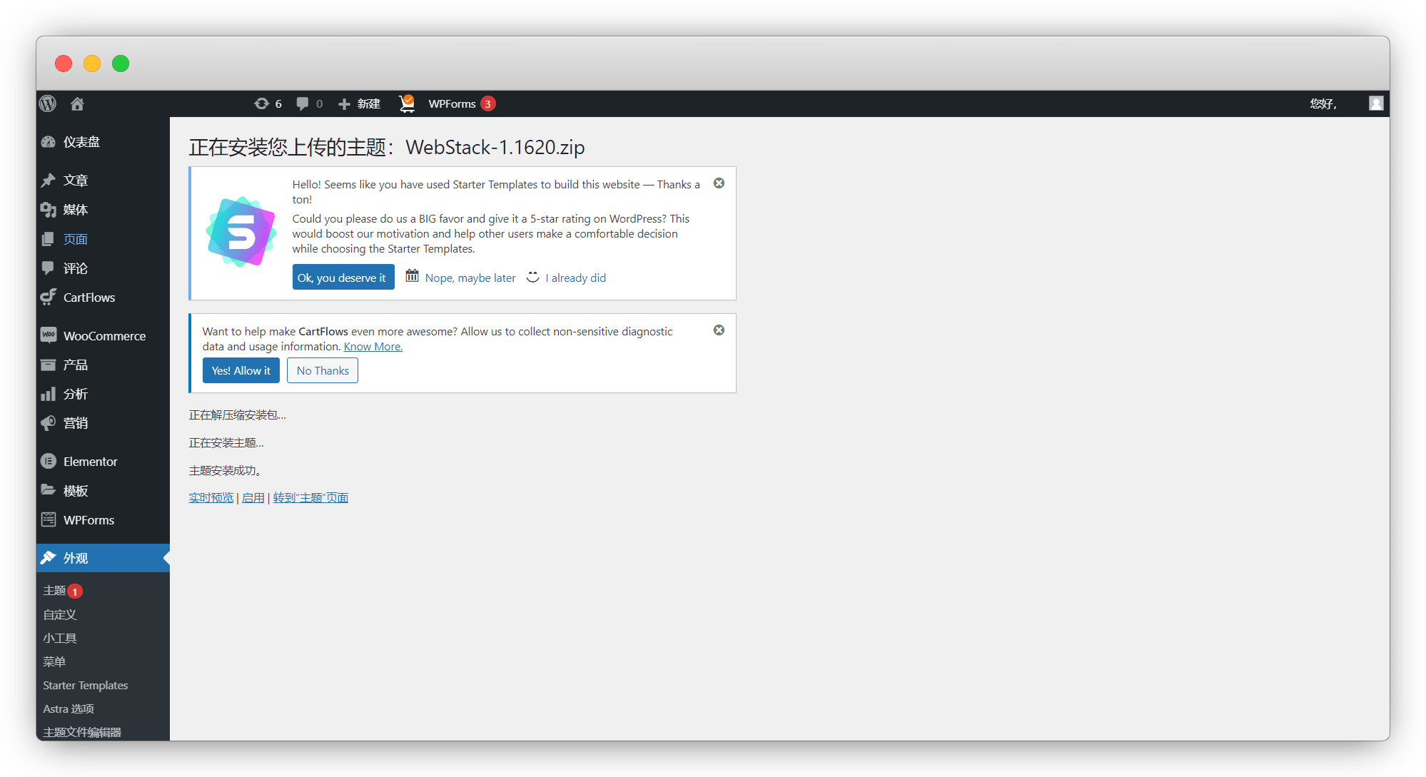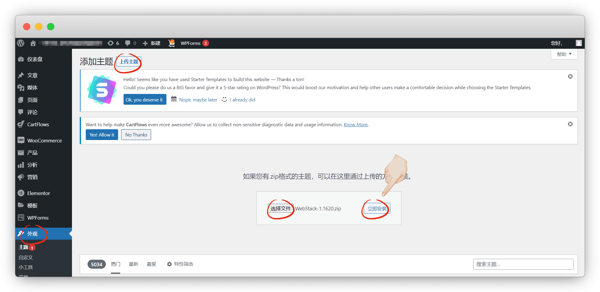 或者在 /wp-content/themes 文件夹新建webstack文件夹,并上传所有文件