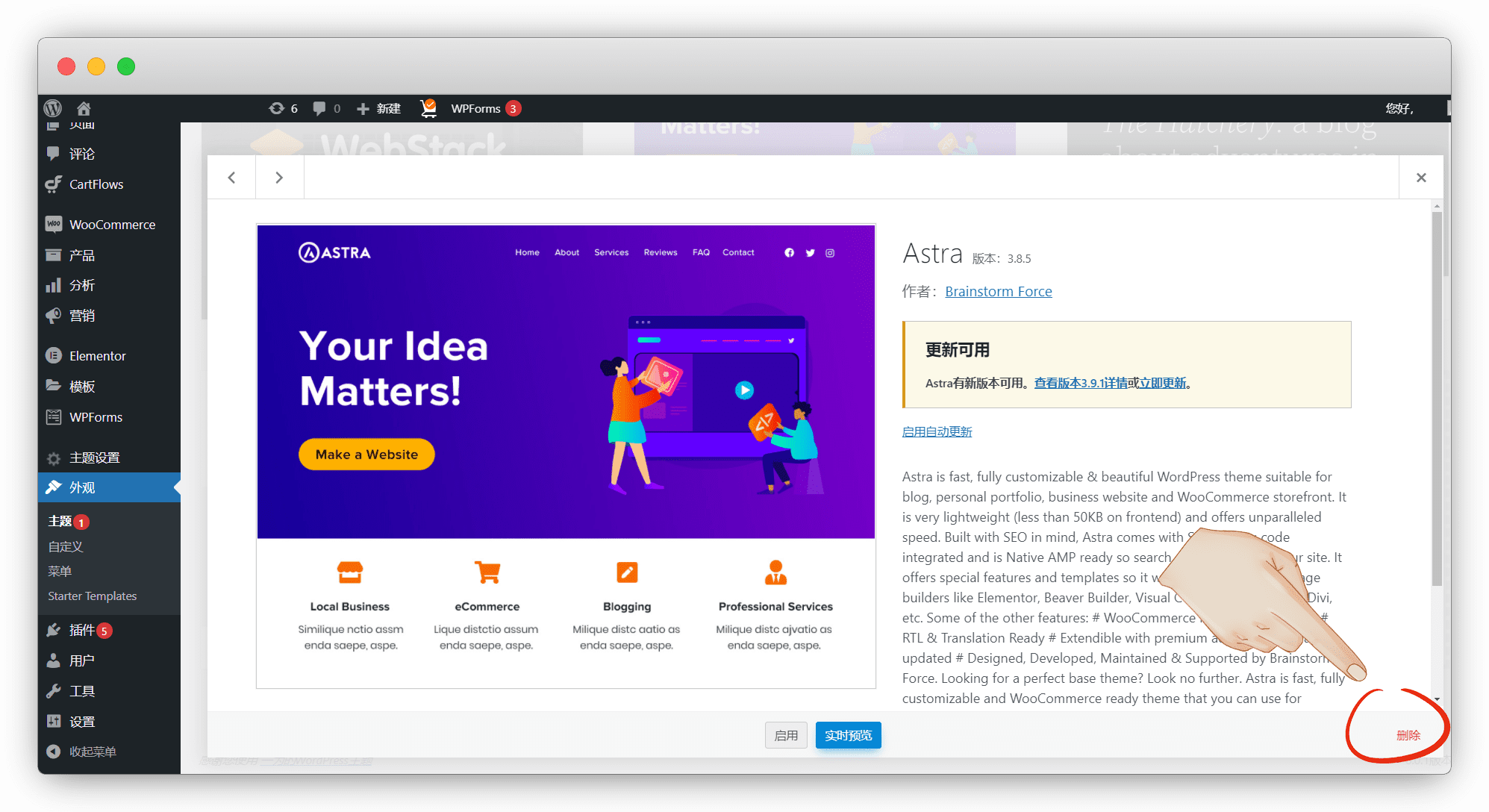 其他主题怎么删掉呢,主题详情-右下有个删除