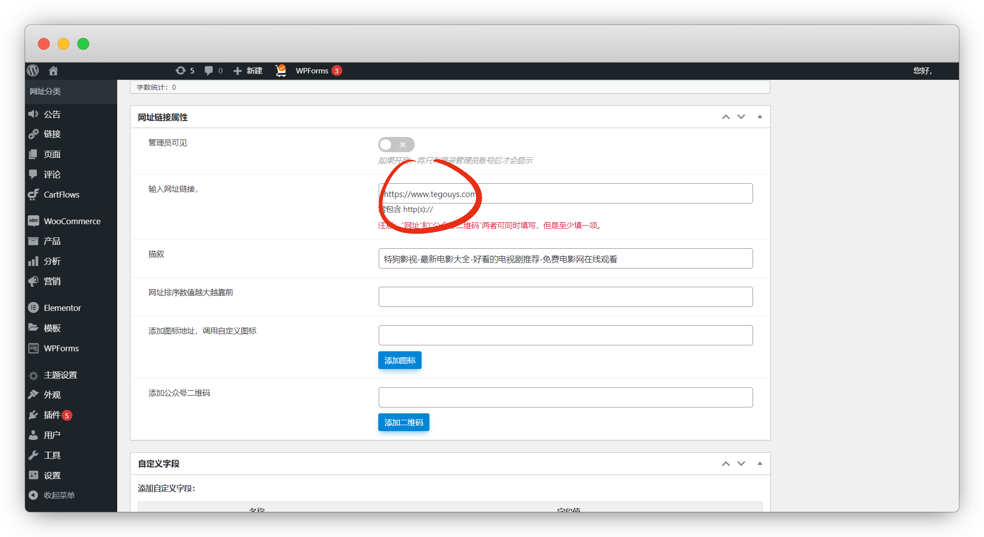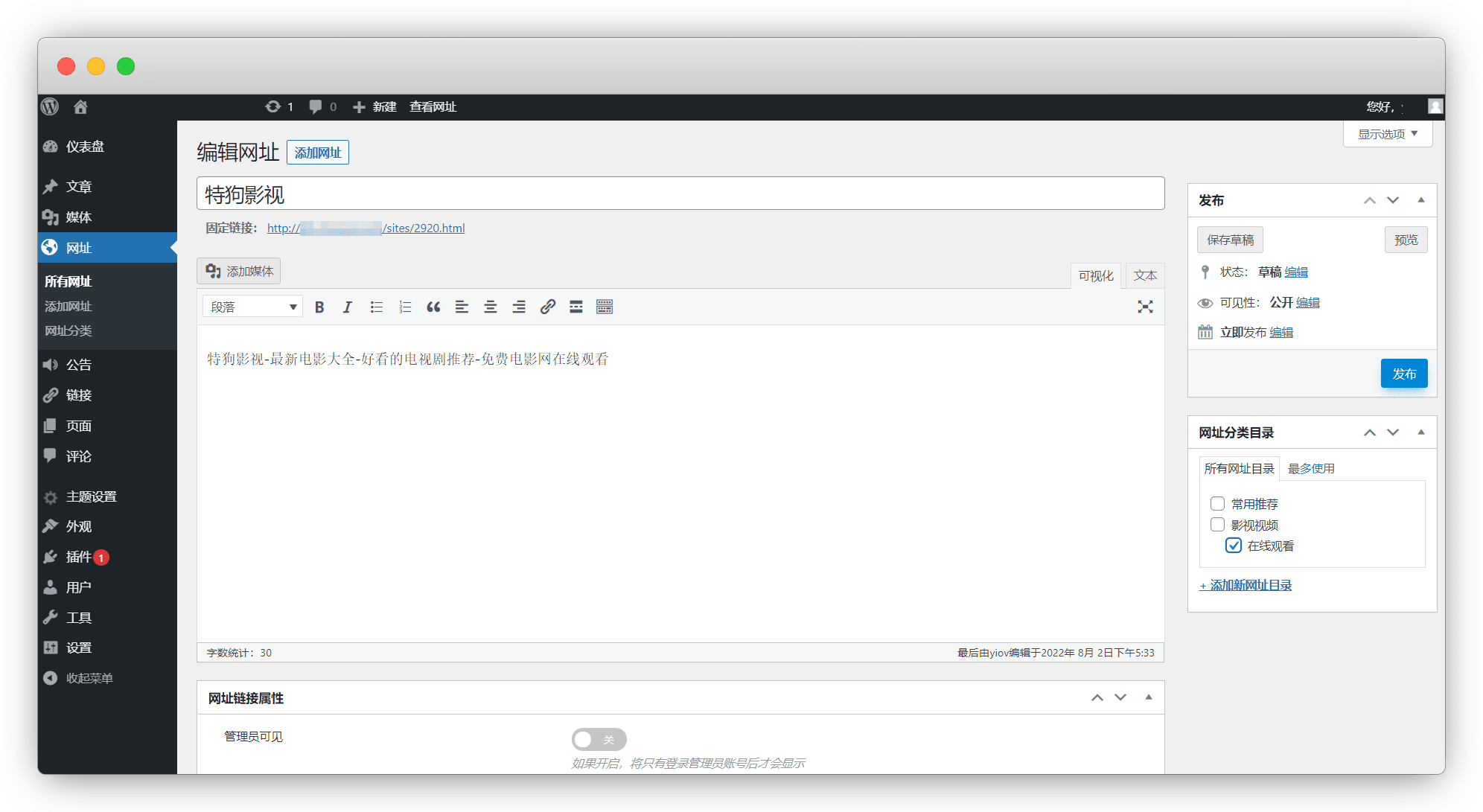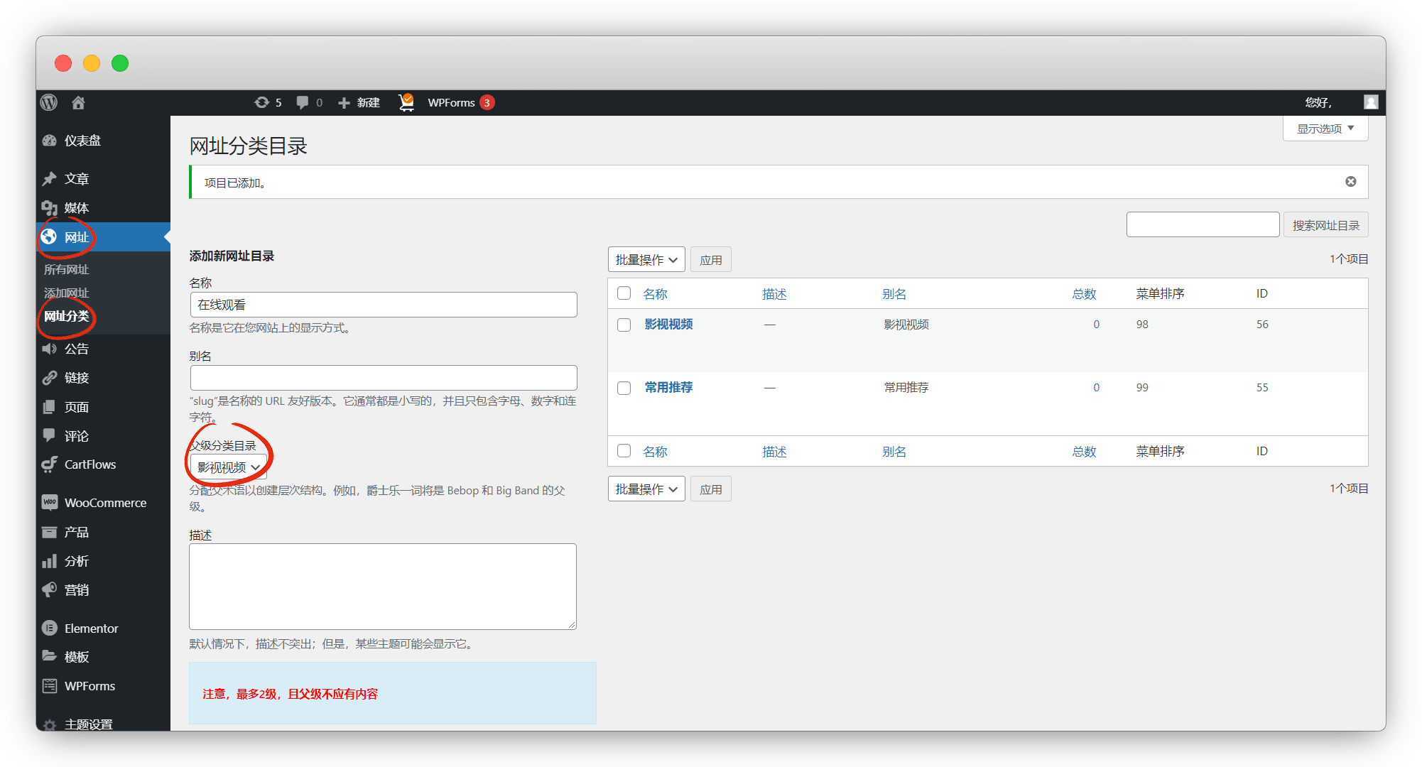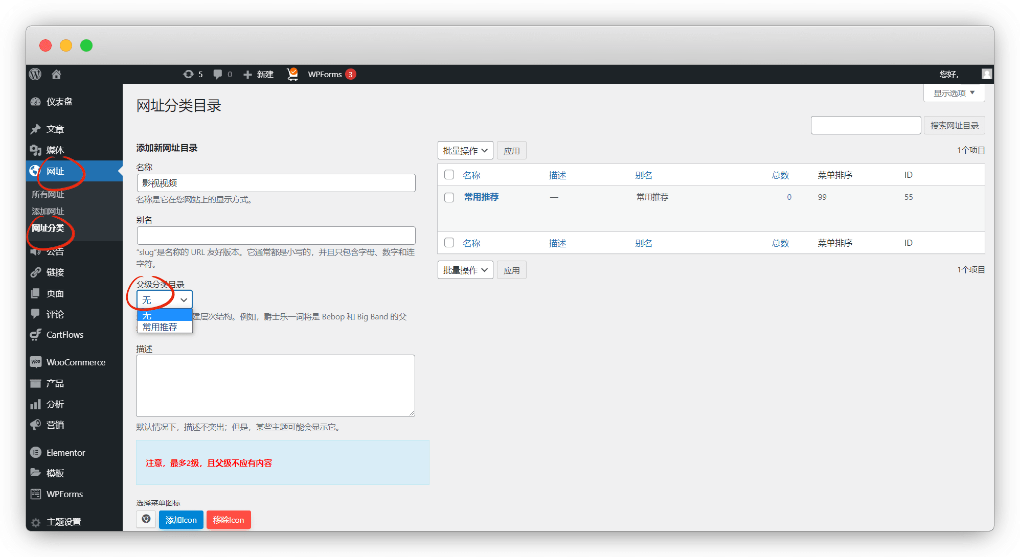 网址-网址分类-名称自己取,父级选已创建好的一级目录