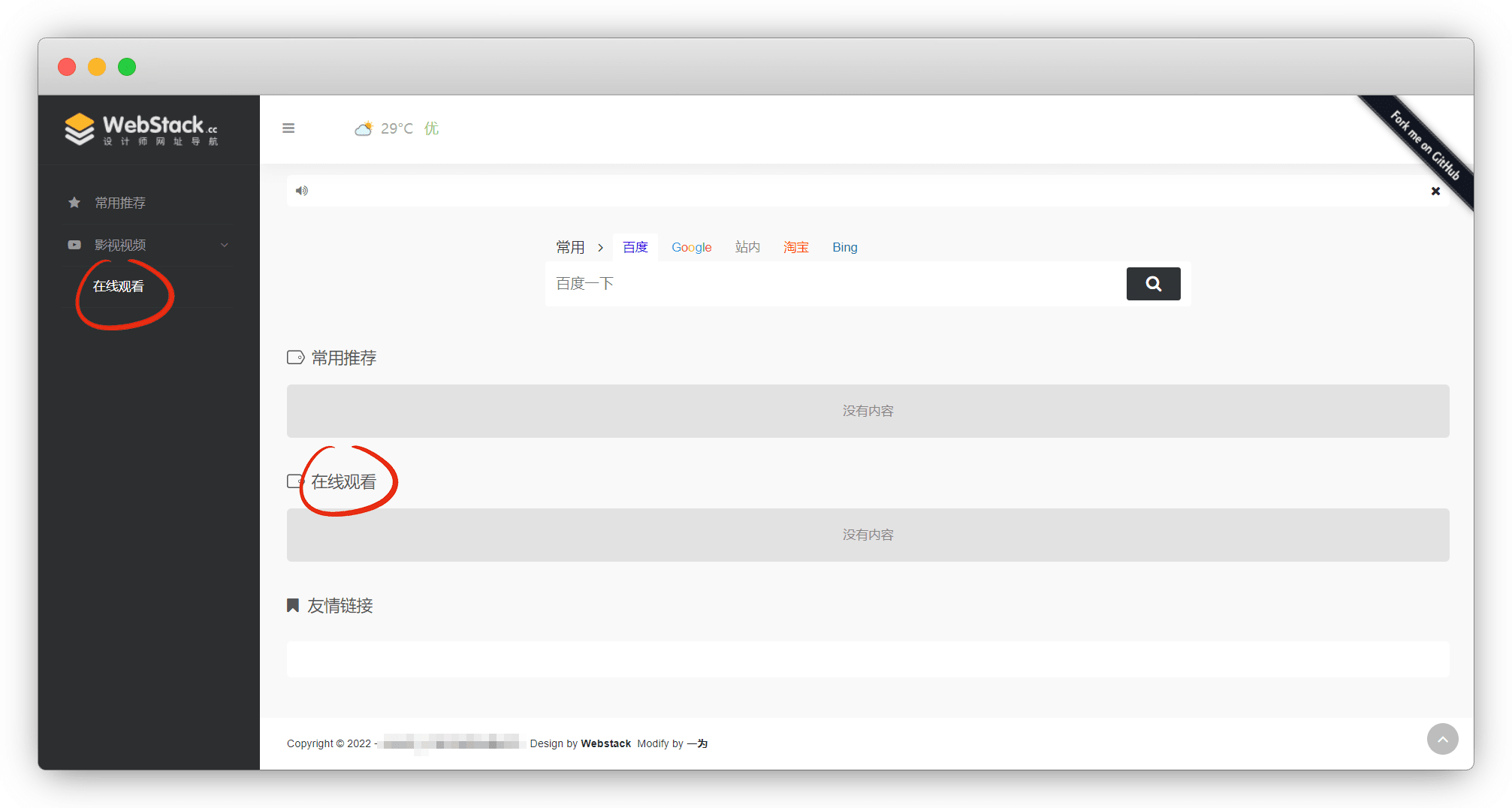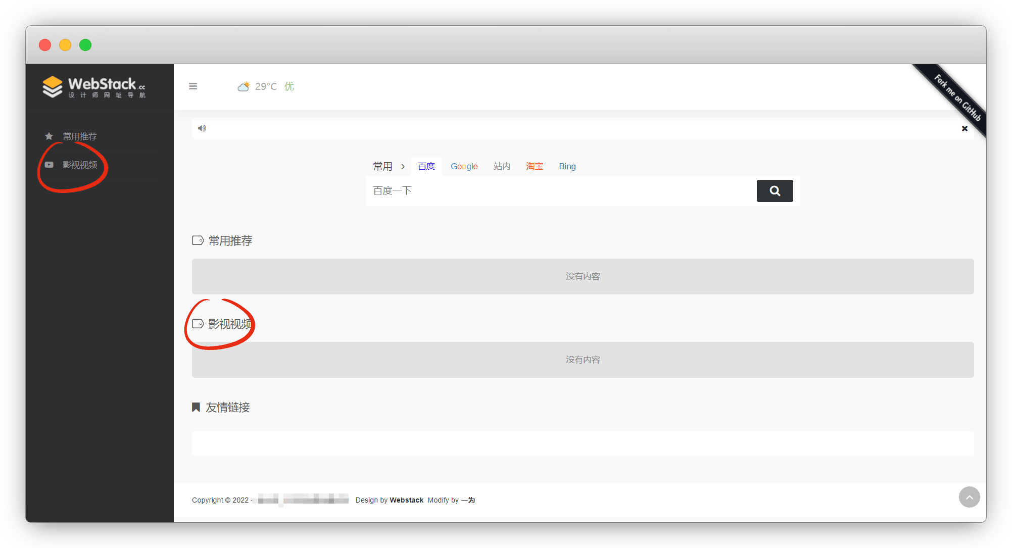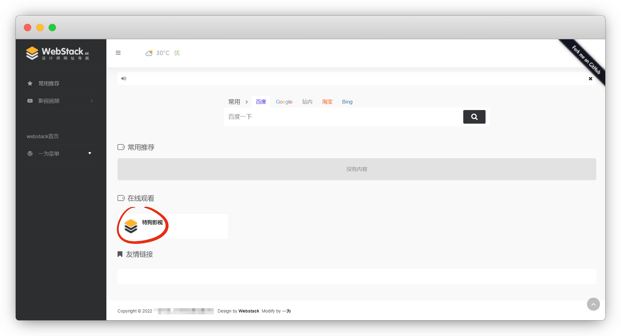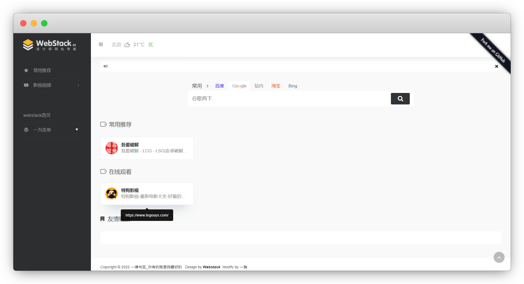 这里我使用的是 @Viggoz 大佬的 Webstack 导航