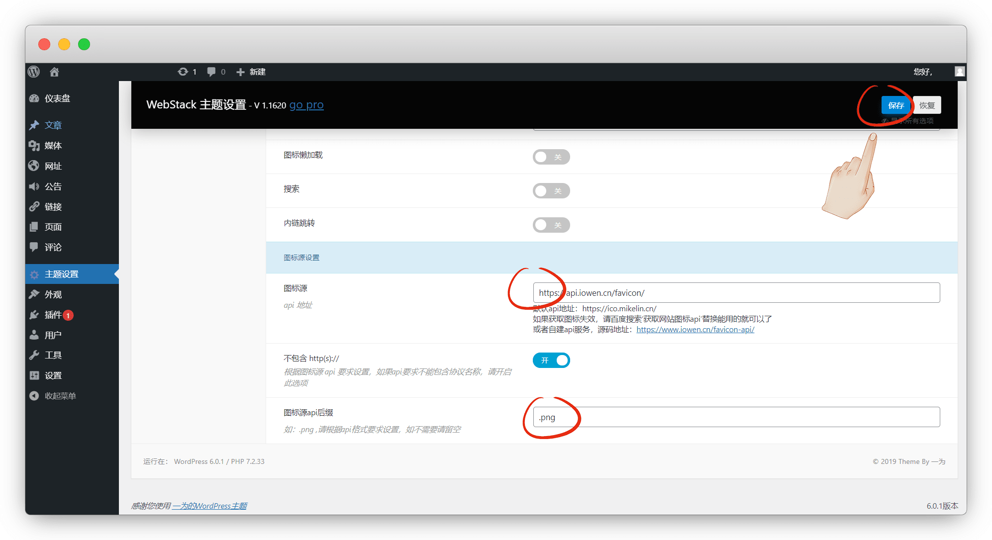 这里我们直接用 一为的api ,或者自己按他的源码搭建,图标源api后缀填.png,保存