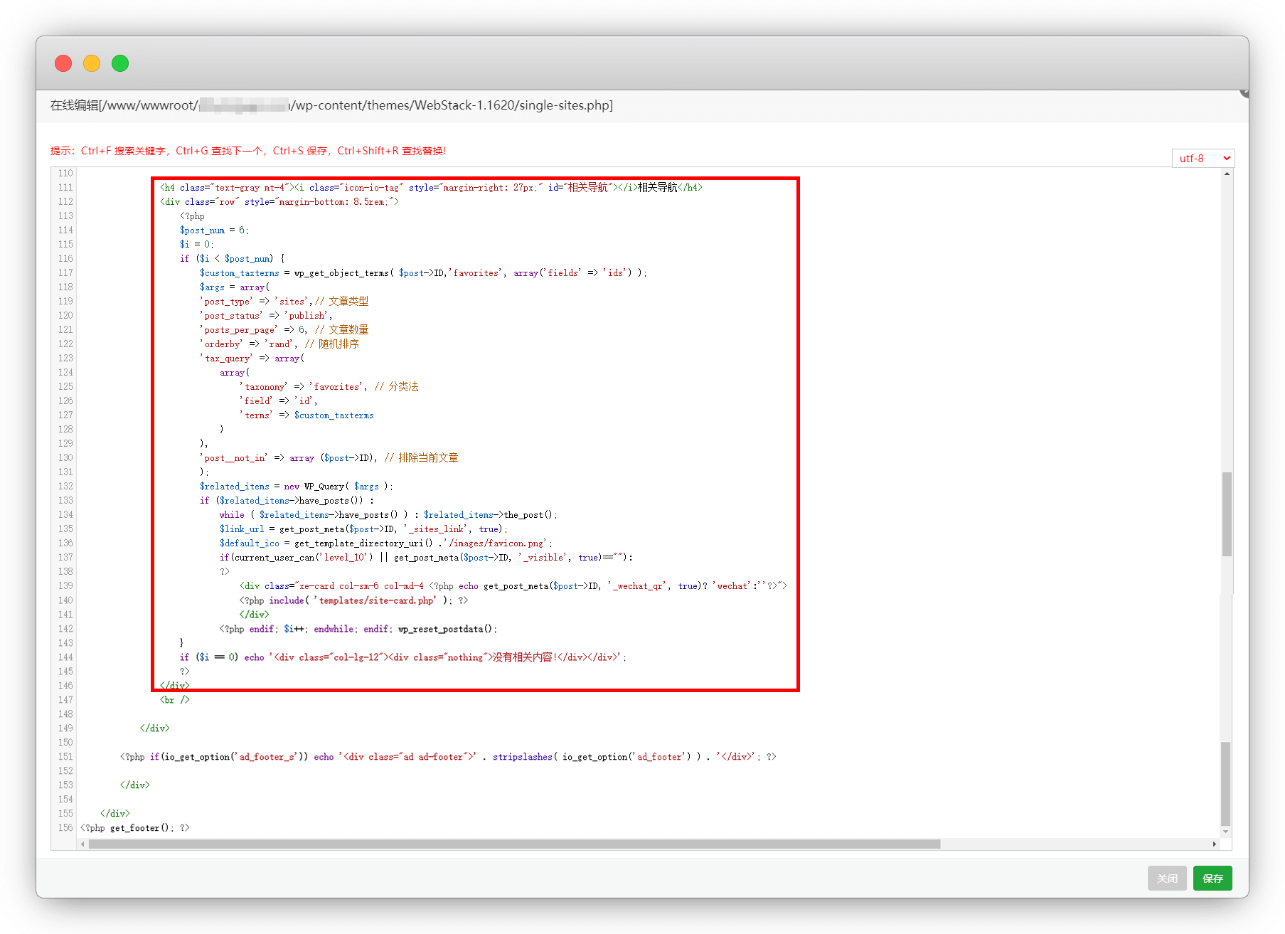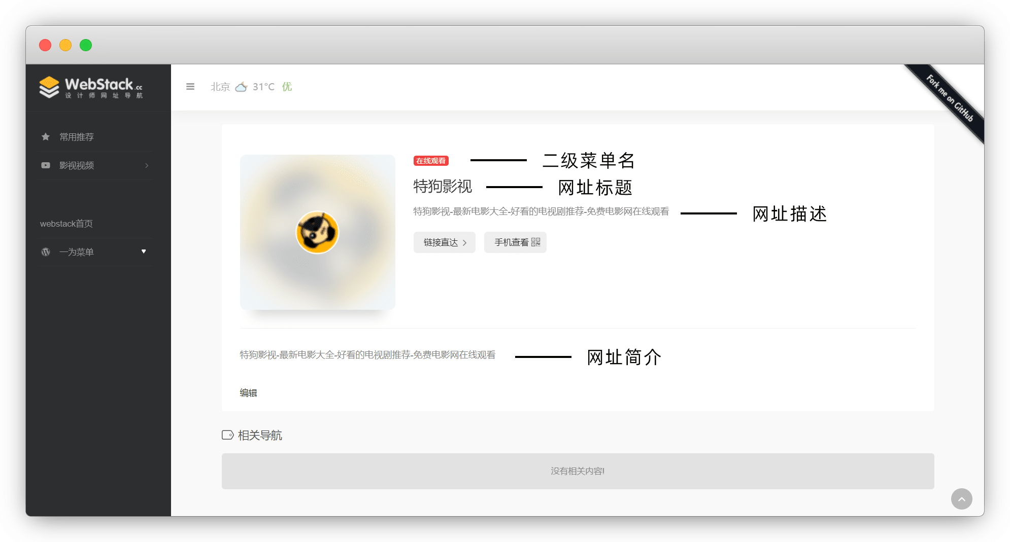 如果不喜欢下方的 相关导航 ,修改文件wp-content/themes/WebStack-1.1620/single-sites.php,删掉第111-146行,这样下面就干净了