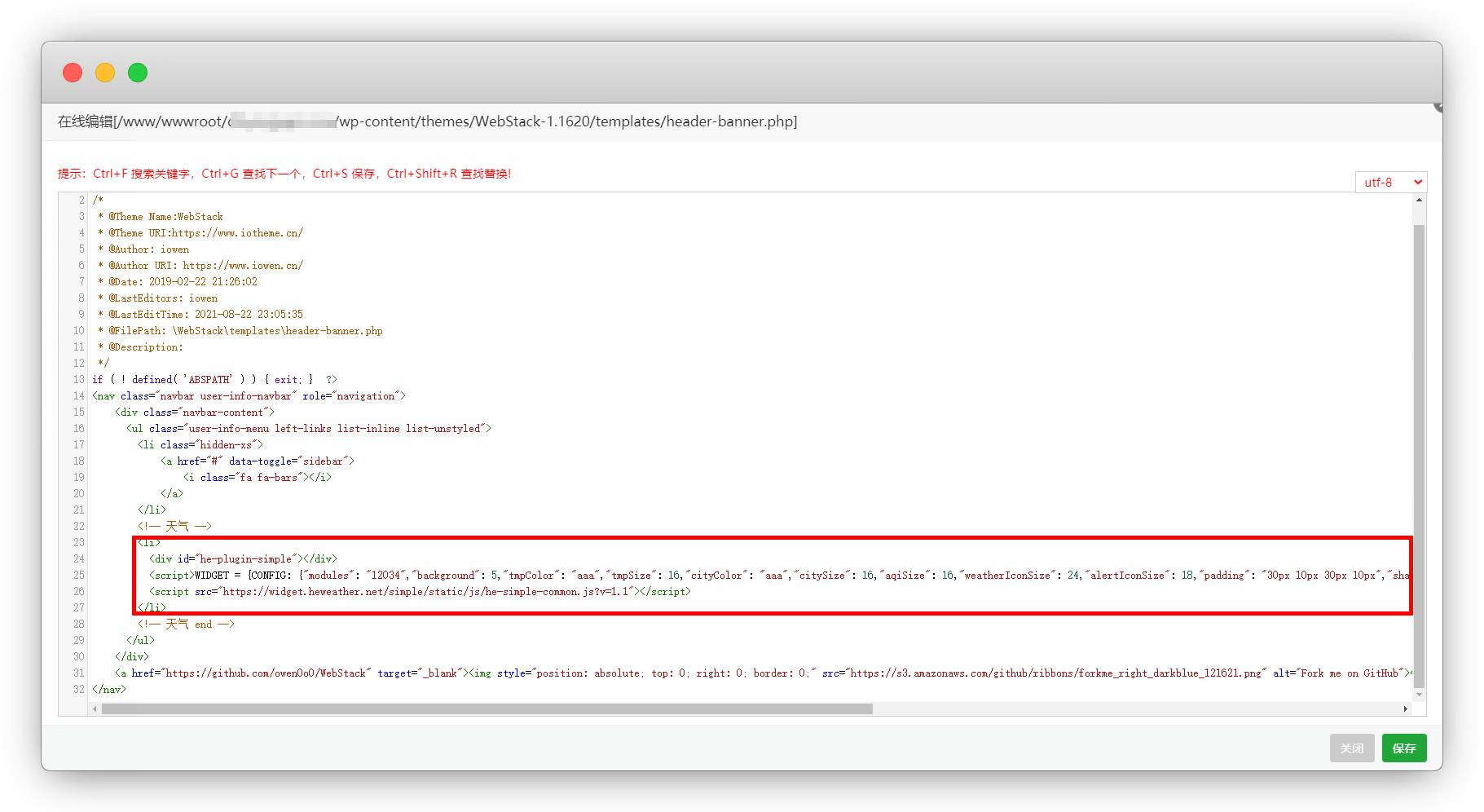 修改文件wp-content/themes/WebStack-1.1620/footer.php,修改第22或者23行即可