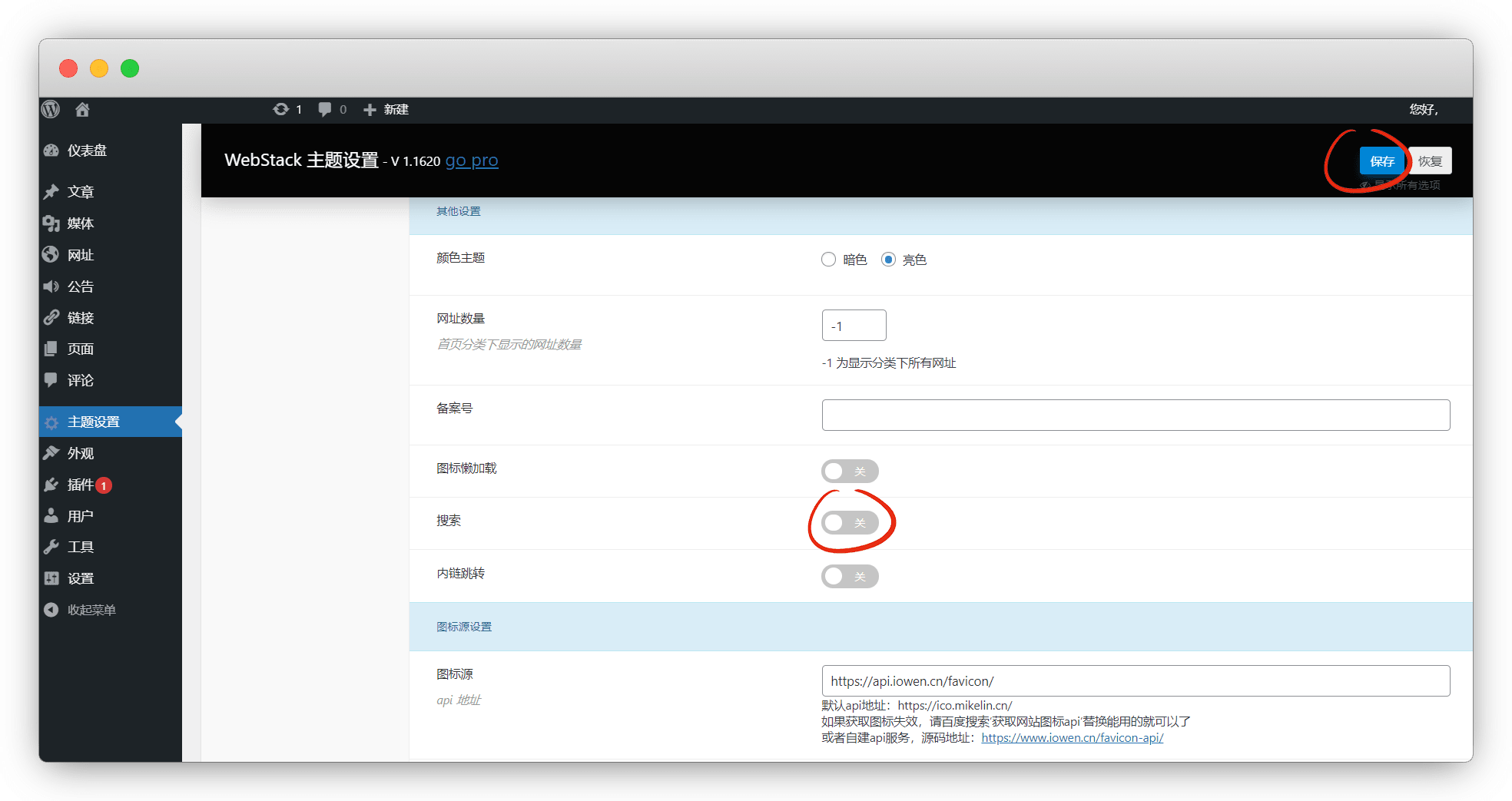 主题设置-常规设置-搜索(关闭)