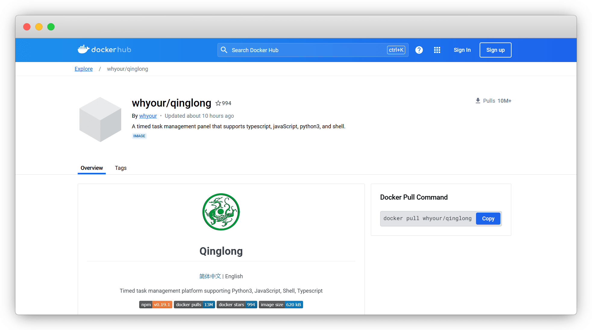 在Tags也能直观的看到,pull命令就可以直接使用了