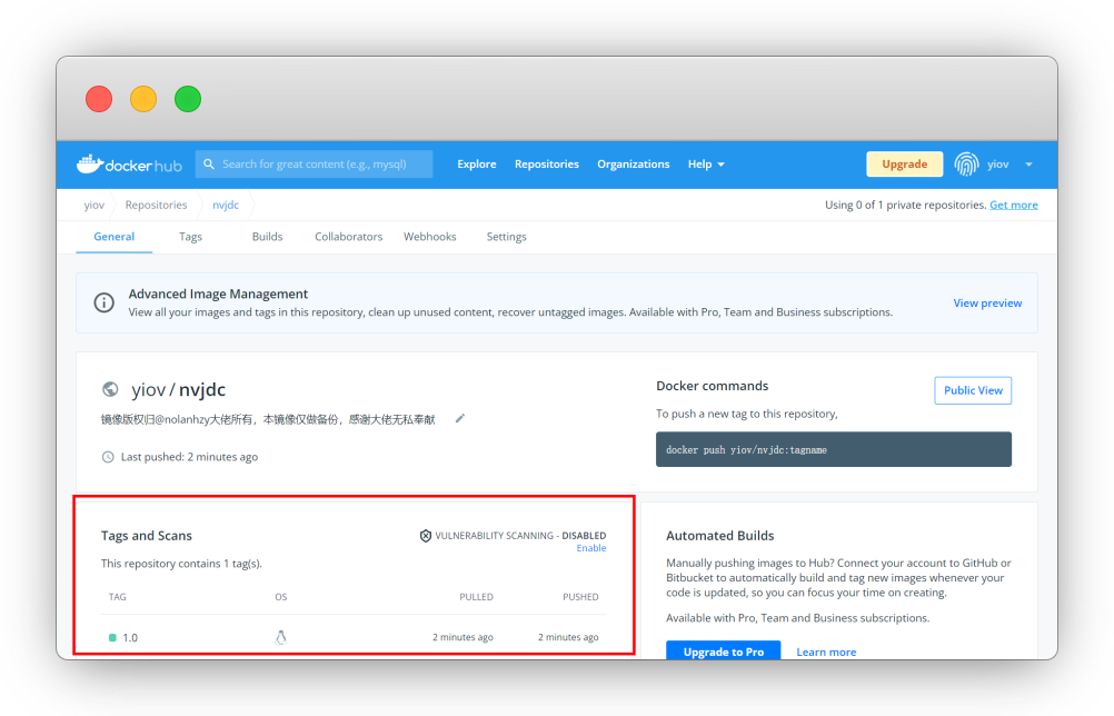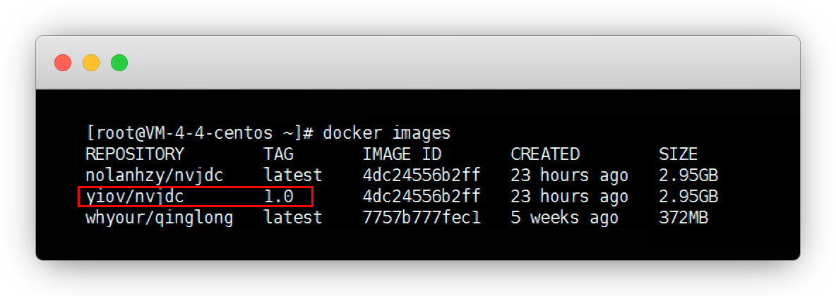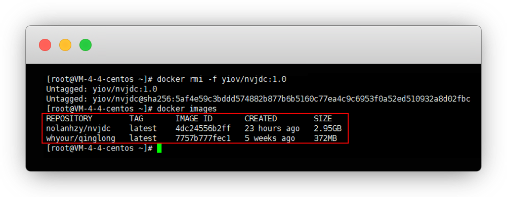 比如我的就是:docker rmi -f yiov/nvjdc:1.0