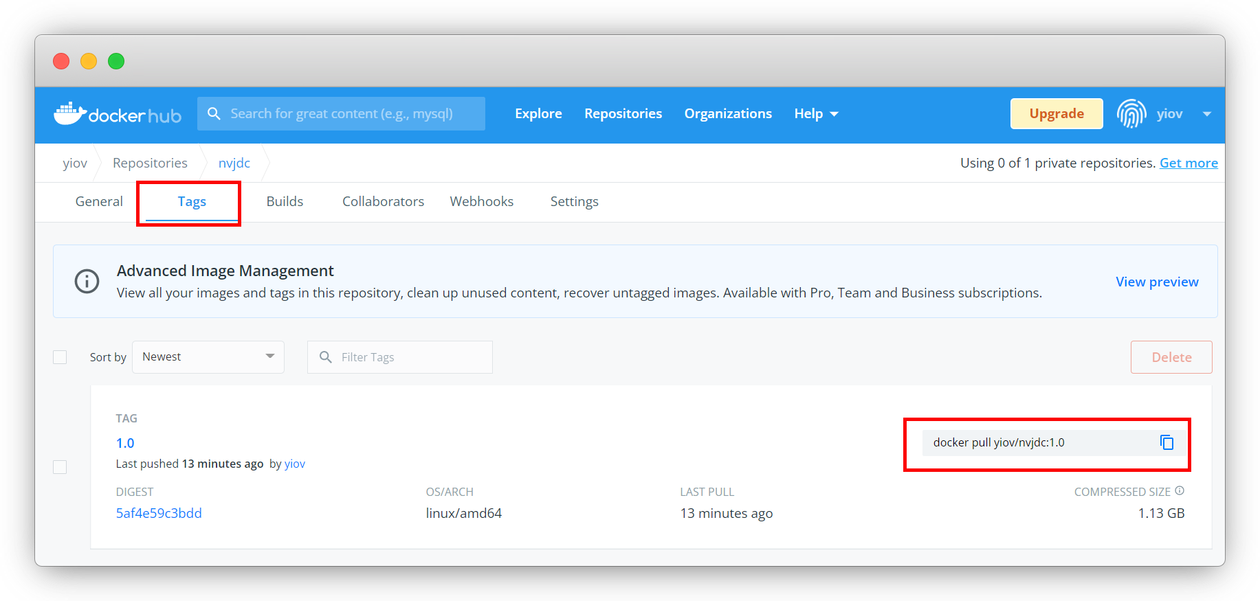 docker tag 4dc24556b2ff yiov/nvjdc:1.0