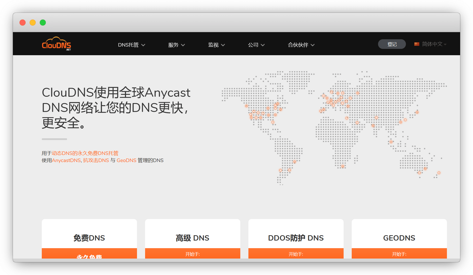 ClouDNS是欧洲最大的全球托管DNS服务提供商,还提供免费的二级域名