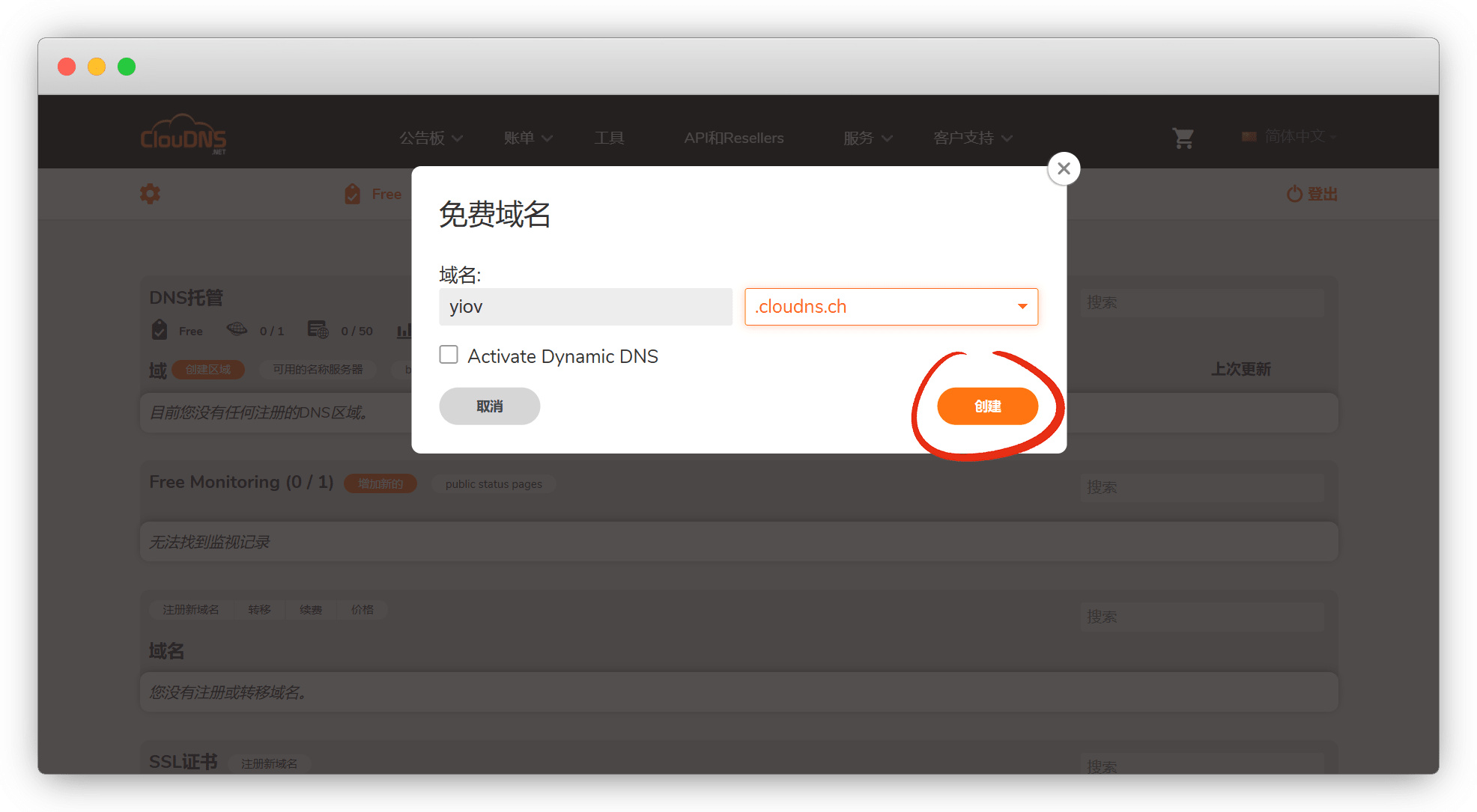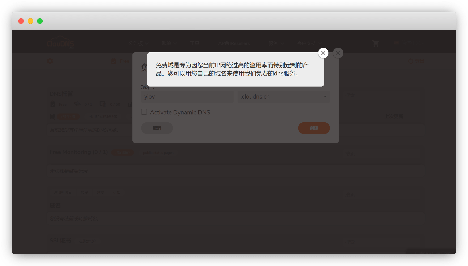 .dns.dynamic.net、.cloudns.be、.cloudns.ch(可能会变动)账号限制:一个账号仅可注册1个