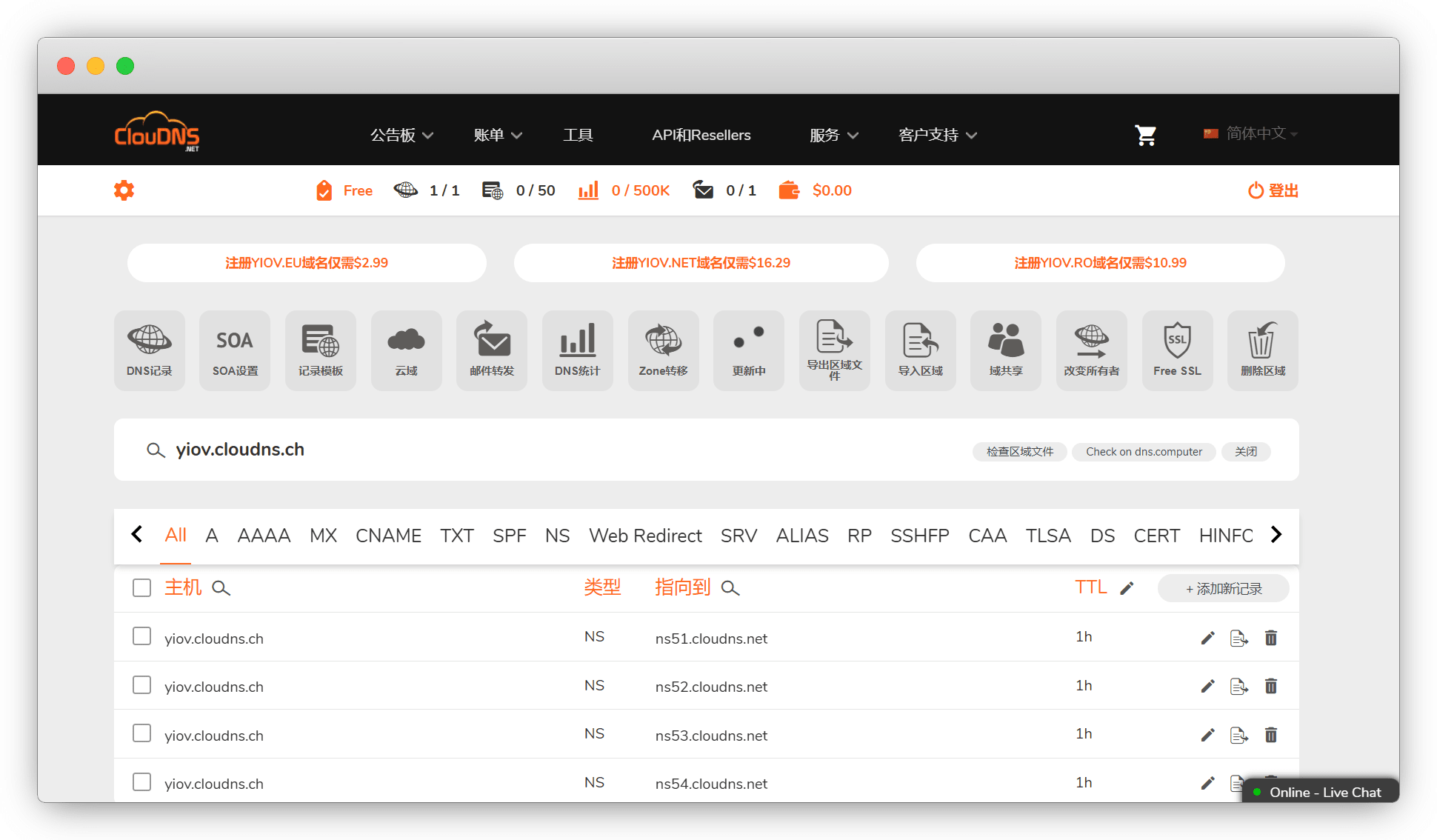 说明:ClouDNS提供的域名,仅有免费使用权,没有所有权!ClouDNS随时可以收回!