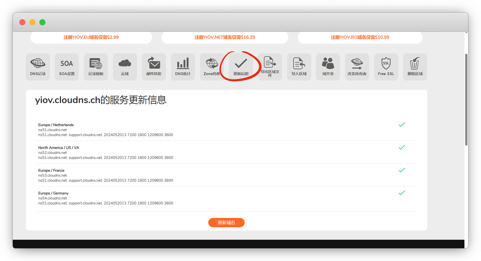 ClouDNS 更新这里都是对勾就行,耐心等待,大概5分钟左右