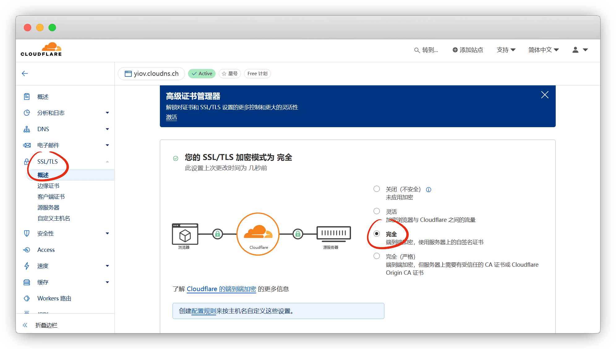 点击左侧菜单栏 SSL/TLS,加密模式改成 完全