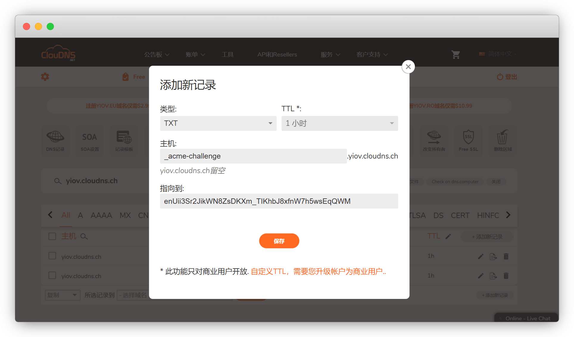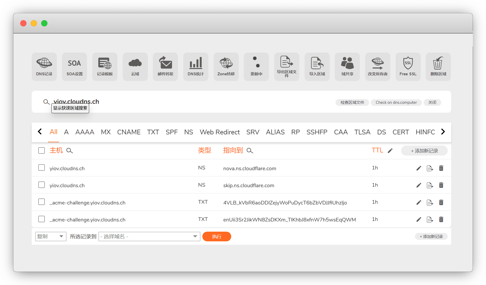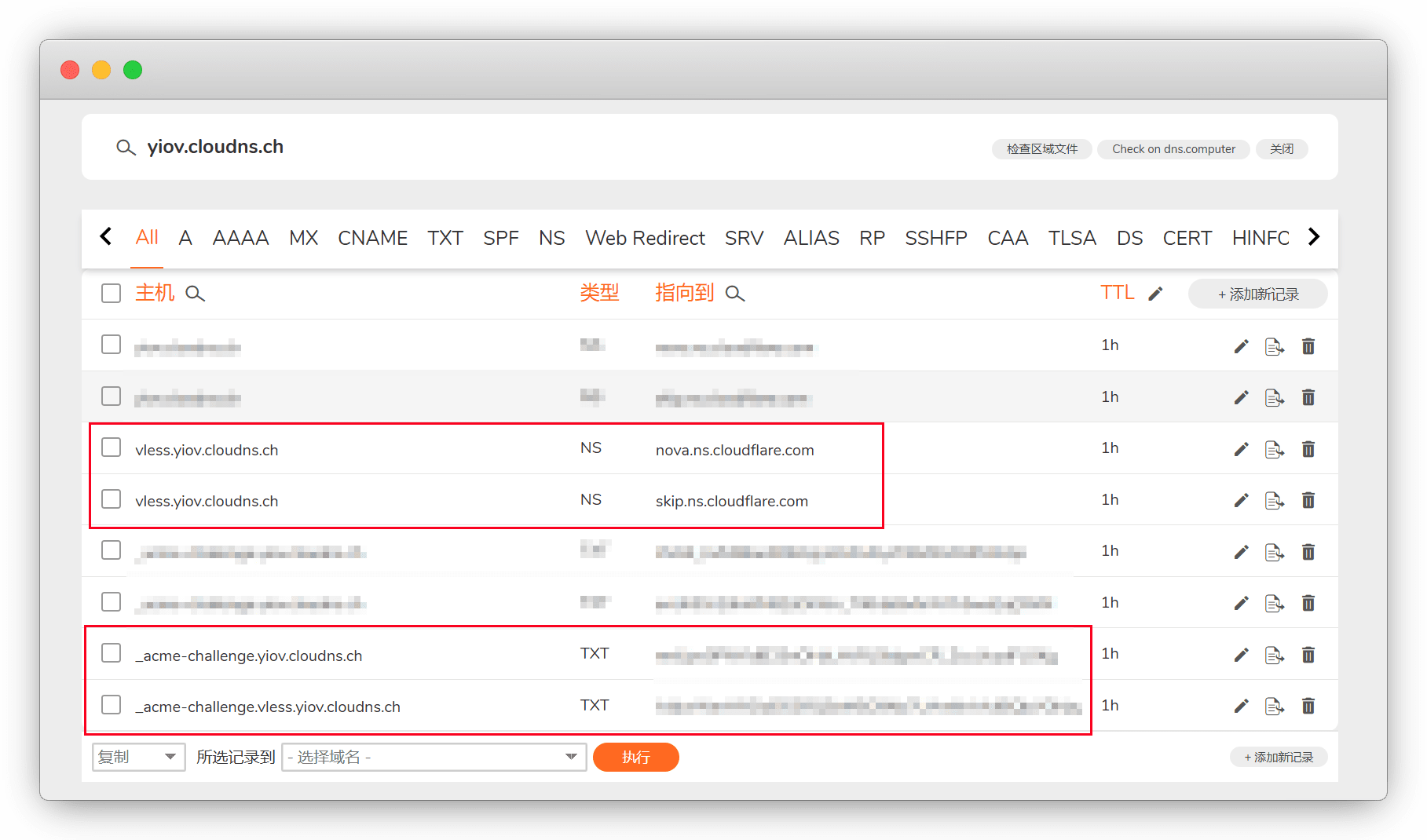 Cloudflare中已经添加好了,但是ClouDNS需要手动添加