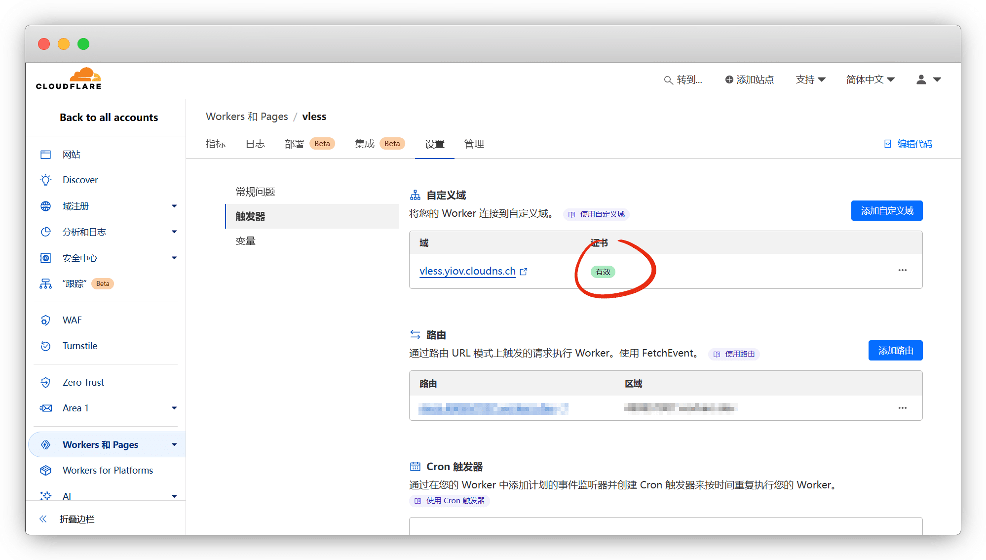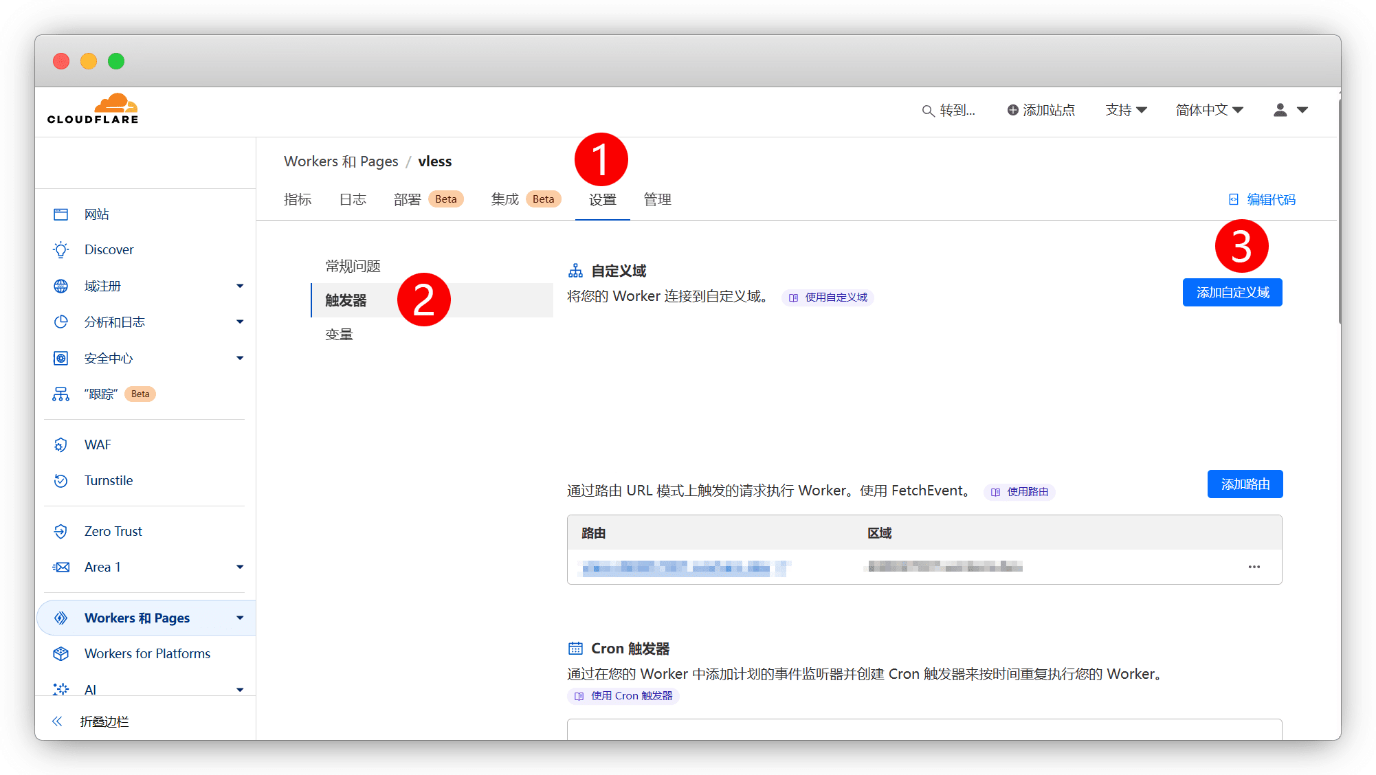 在你的Worker中,设置 - 触发器 - 添加自定义域
