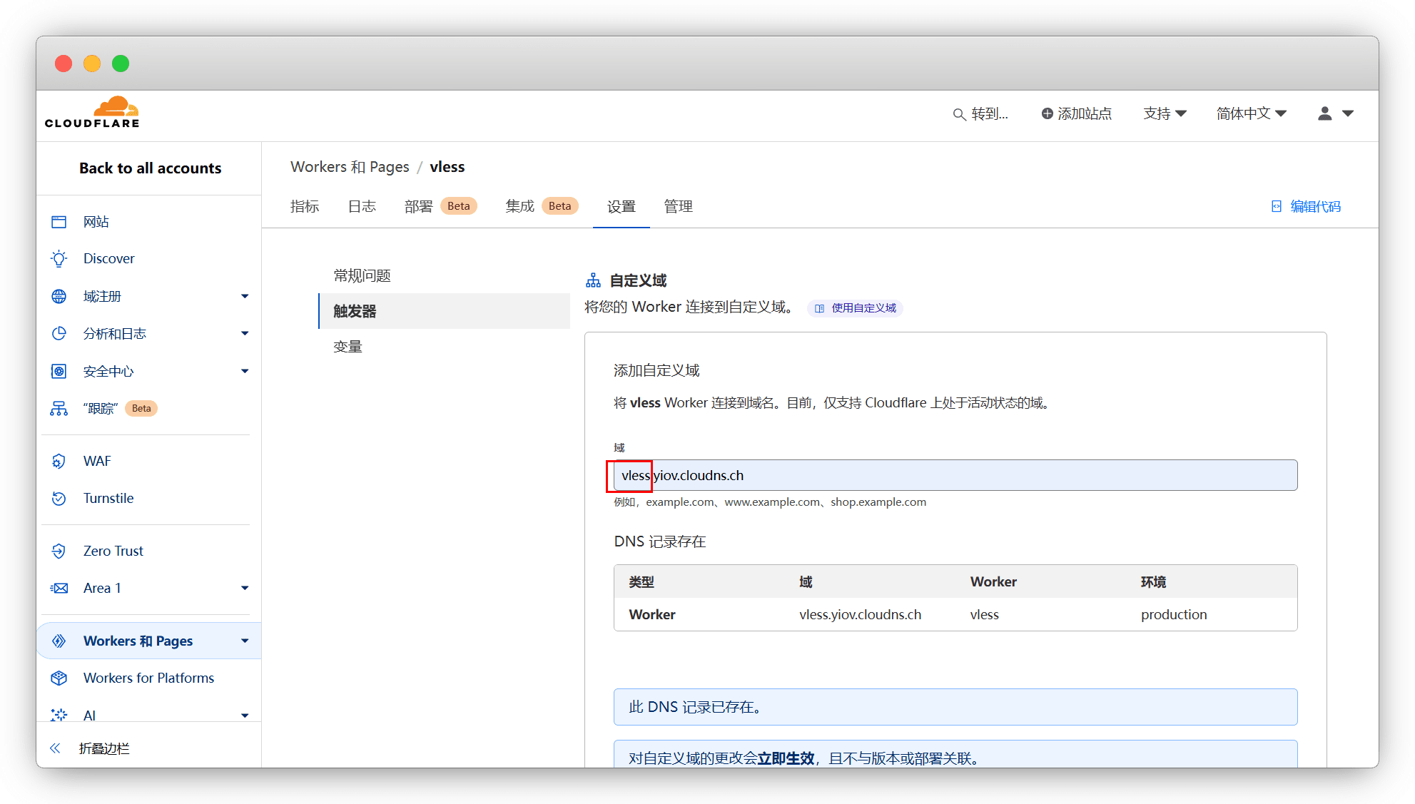域名解析到 CloudFlare 补充:Works使用自定义域