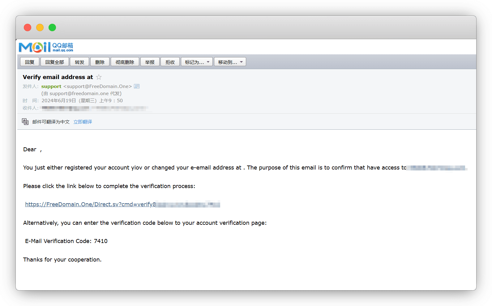 点击邮件中的链接,跳转激活成功即可