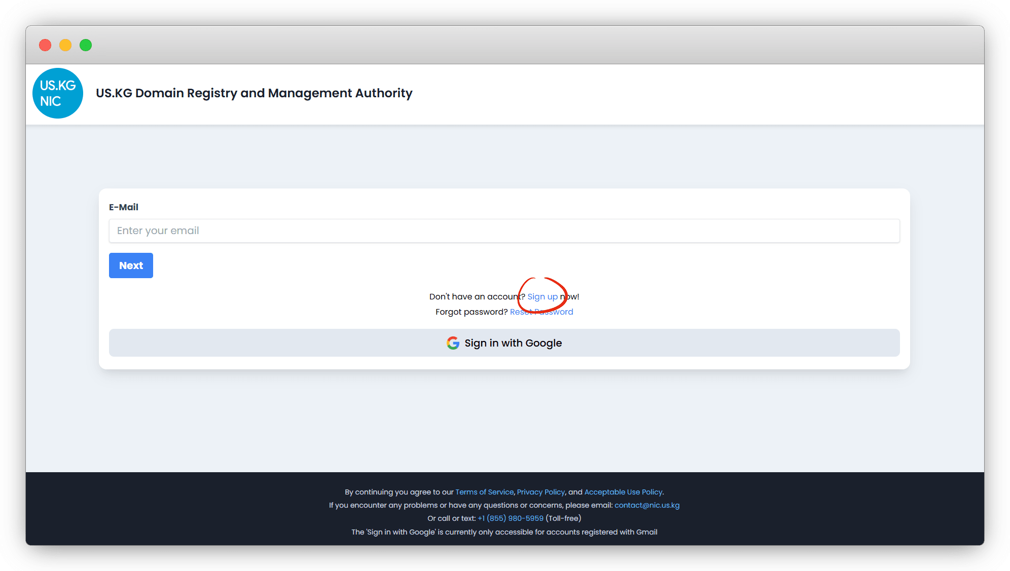 点击 Get US.KG 或手动进入 注册页面,点击 Sign up