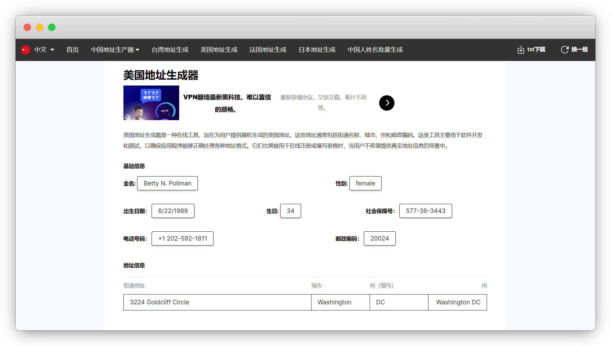 我们用 美国地址生成器 ,生成一个虚假的信息