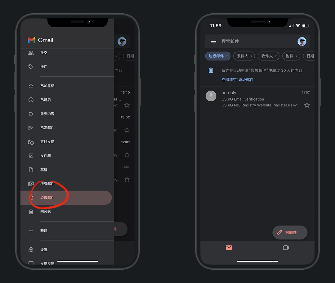 邮件在谷歌邮箱的垃圾邮件中,不要傻等