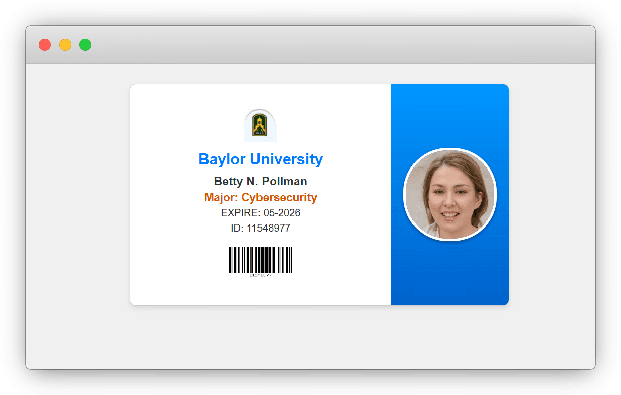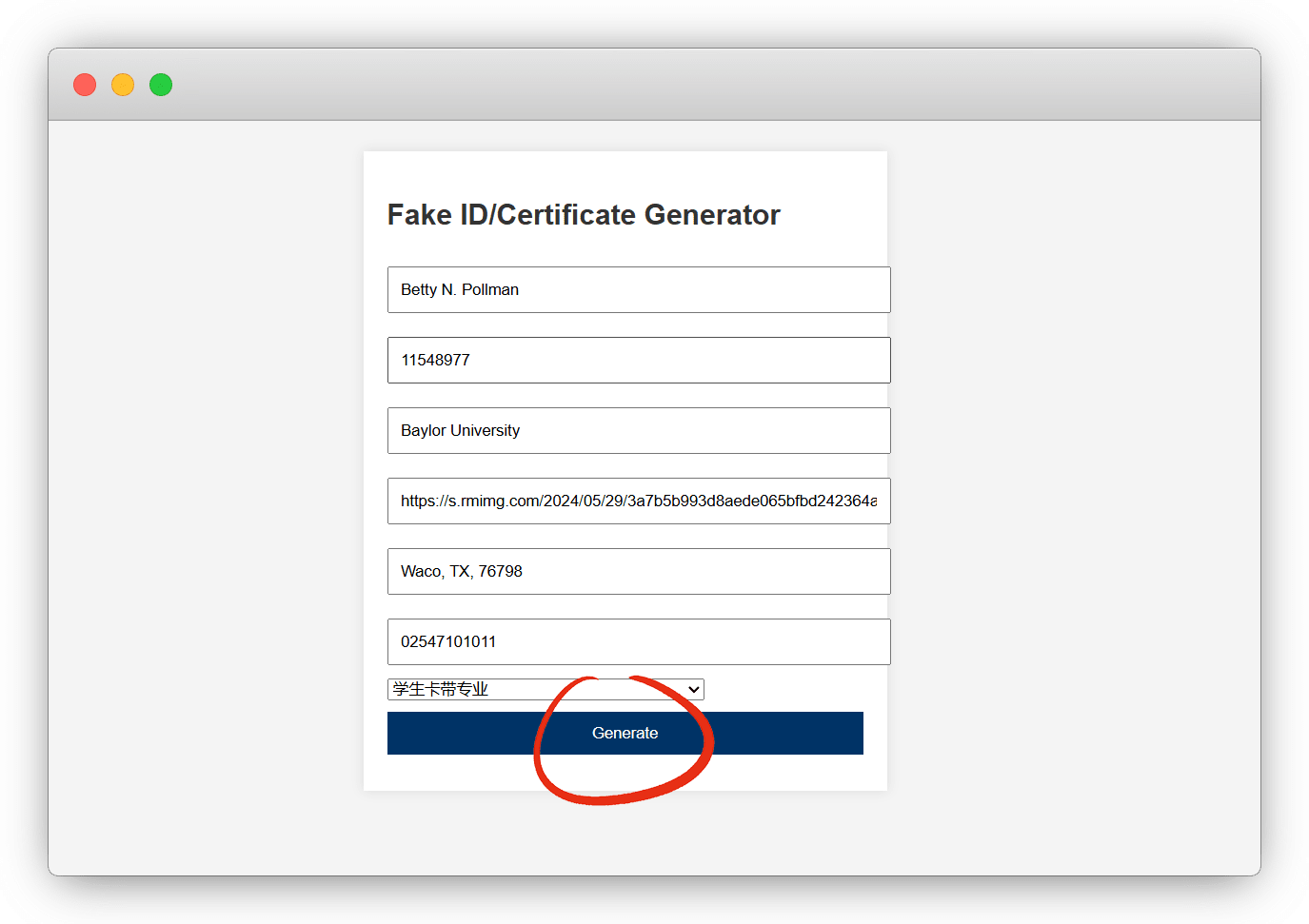 使用 学生卡生成器 ,生成一个虚假的身份