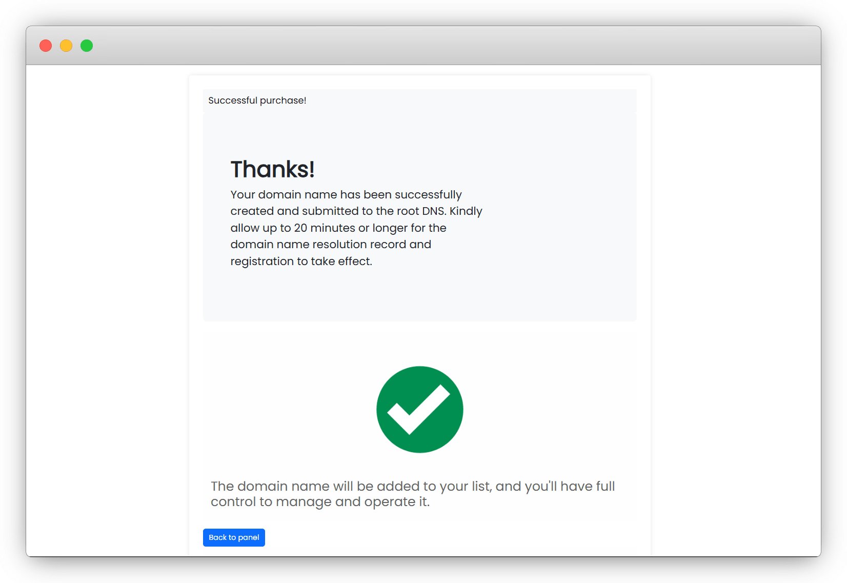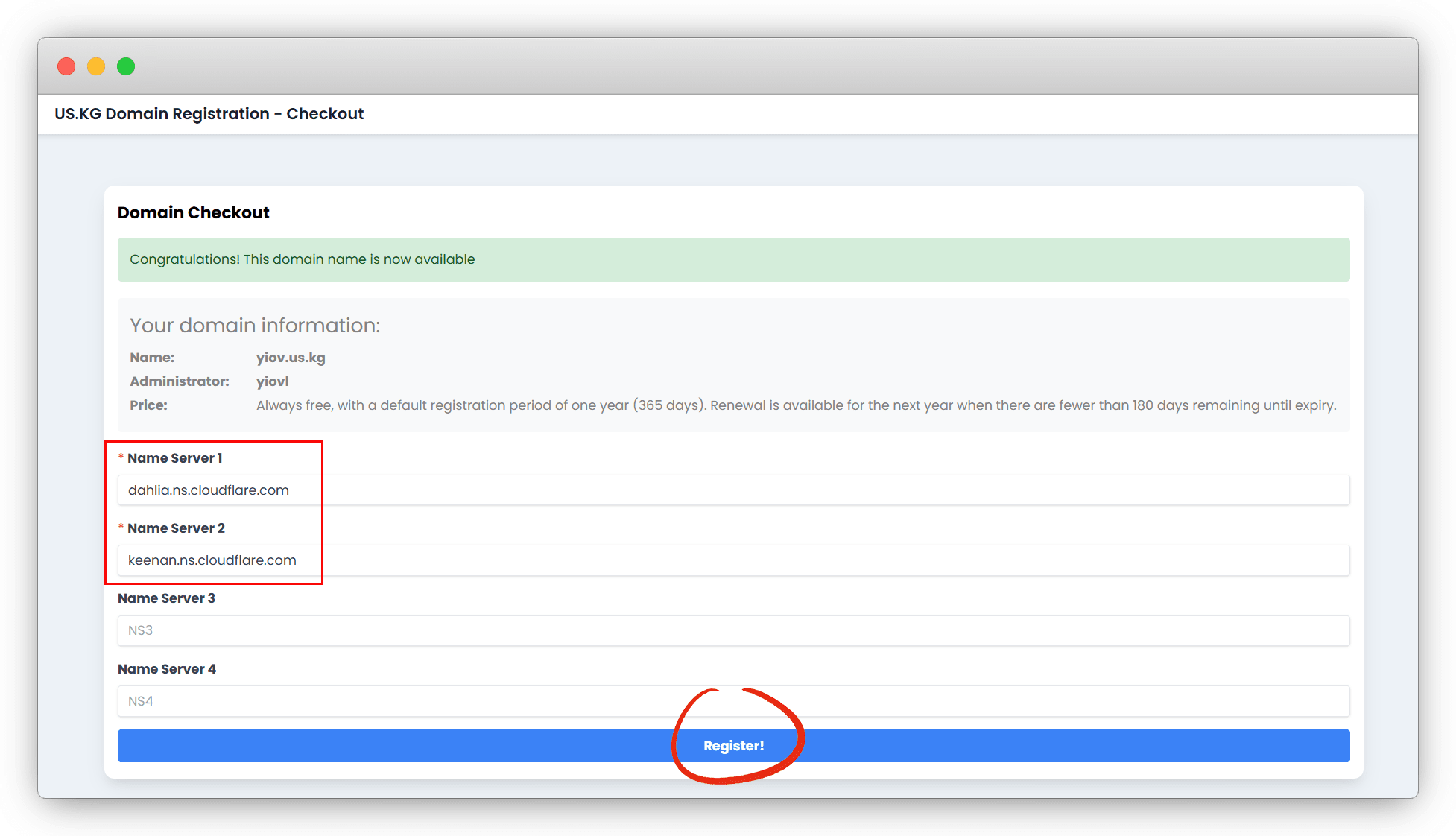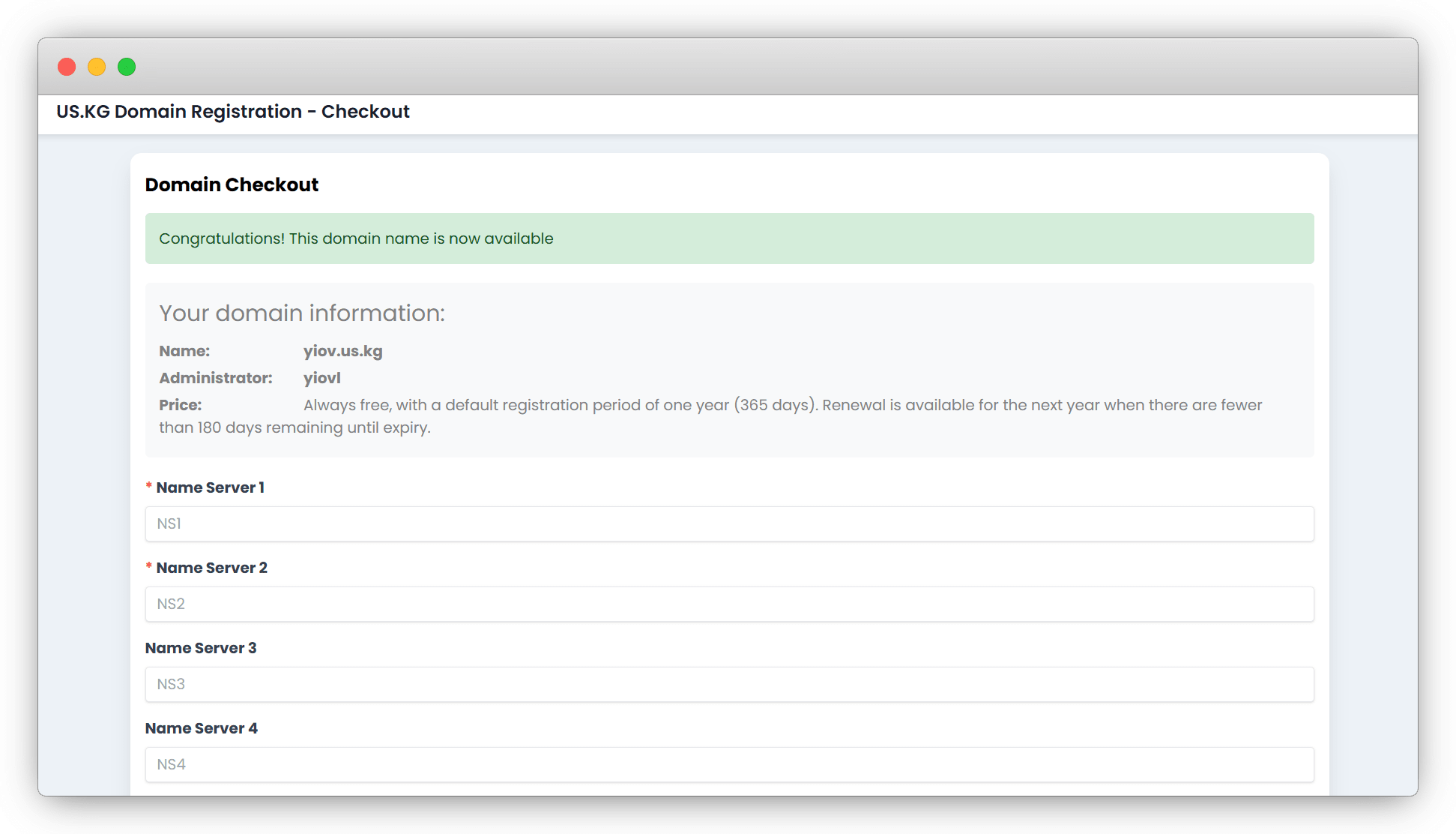 提示成功即可,然后我返回去注册域名