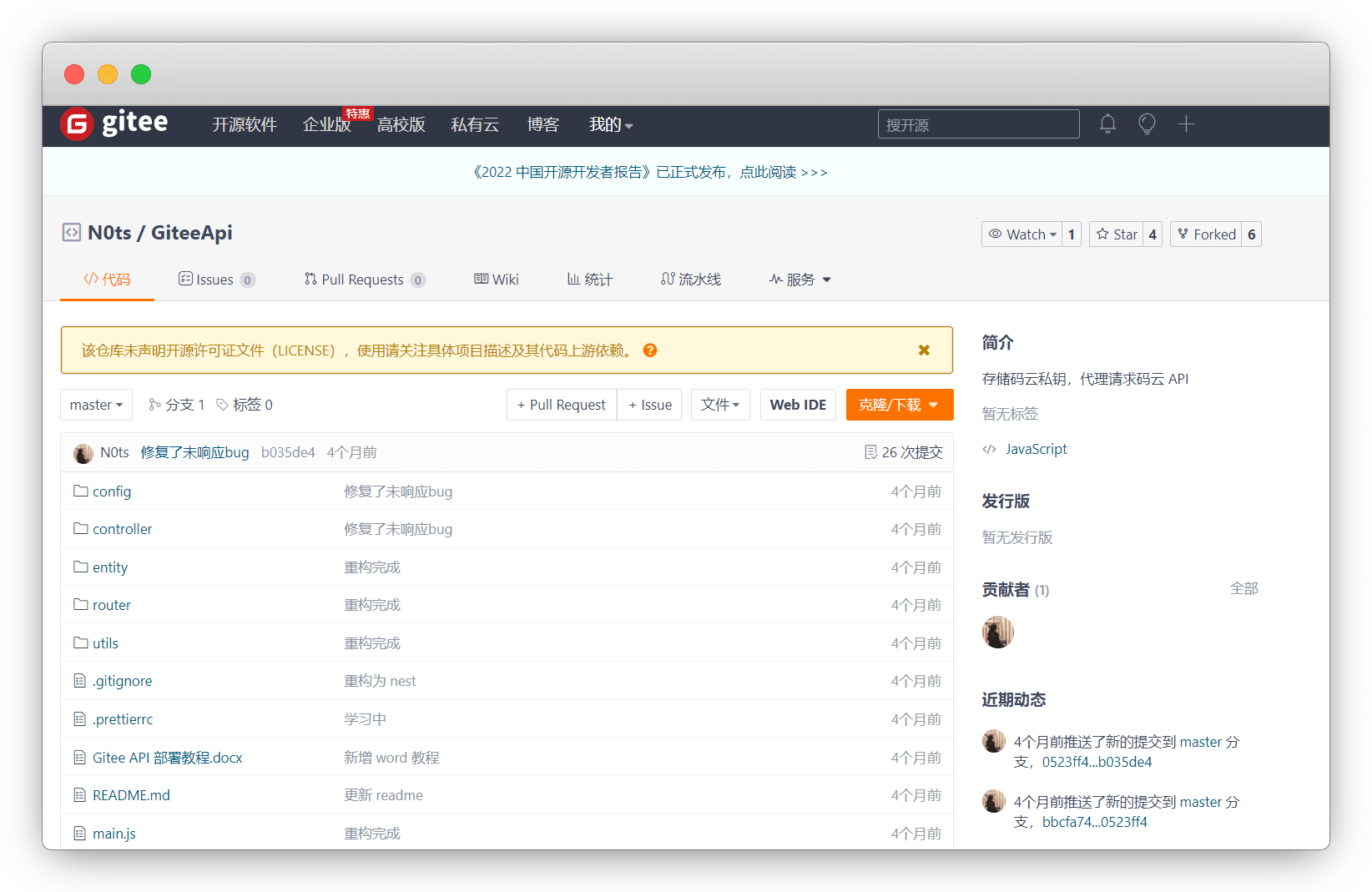 API后端:https://gitee.com/n0ts/gitee-api