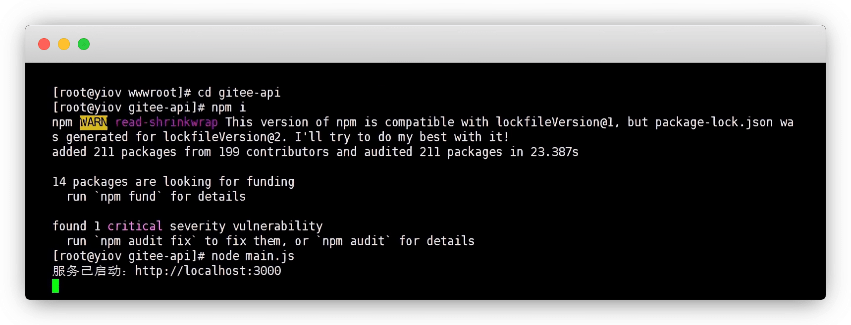 启动项目:自定义启动命令 node main.js