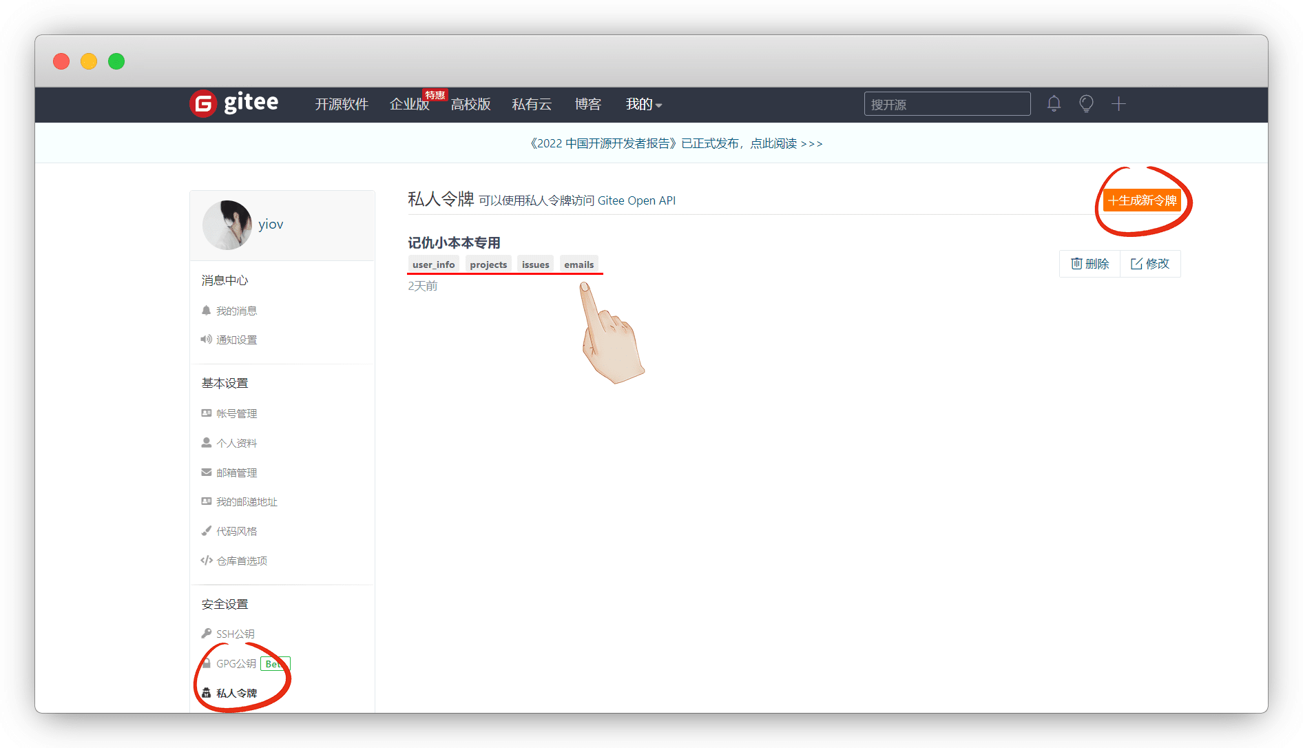 进入自己的gitee主页 - 私人令牌 -生成令牌