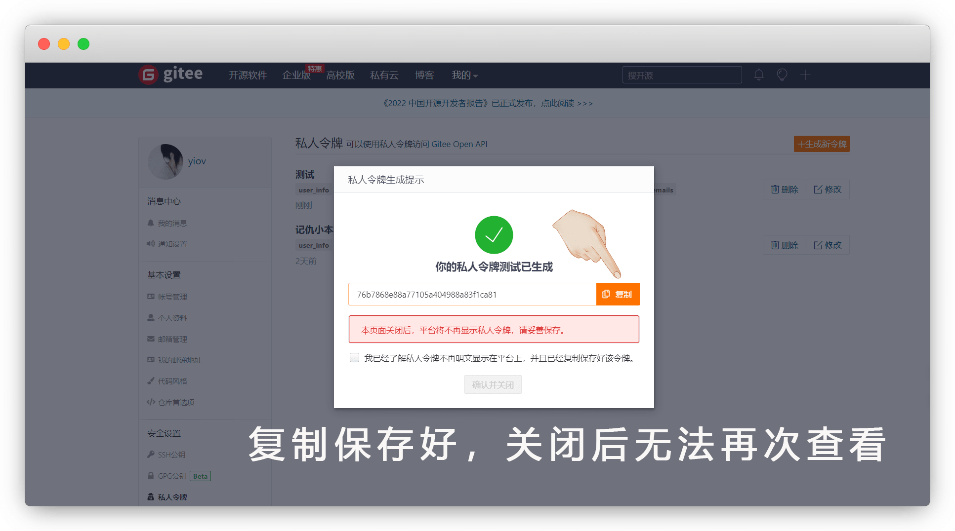 记住你的秘钥,关闭后就无法再次查看了