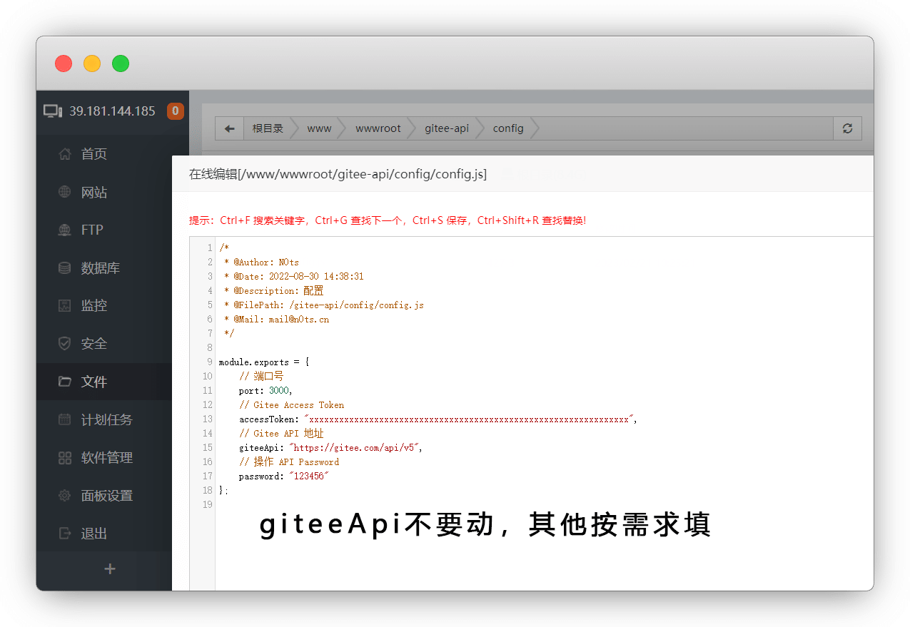 按需修改 password & 端口 & AccessToken 保存,其他不要动