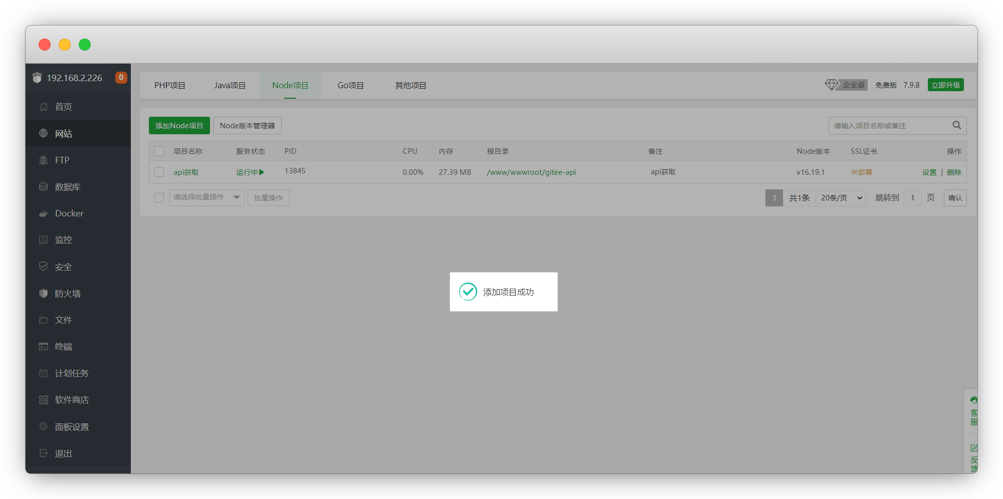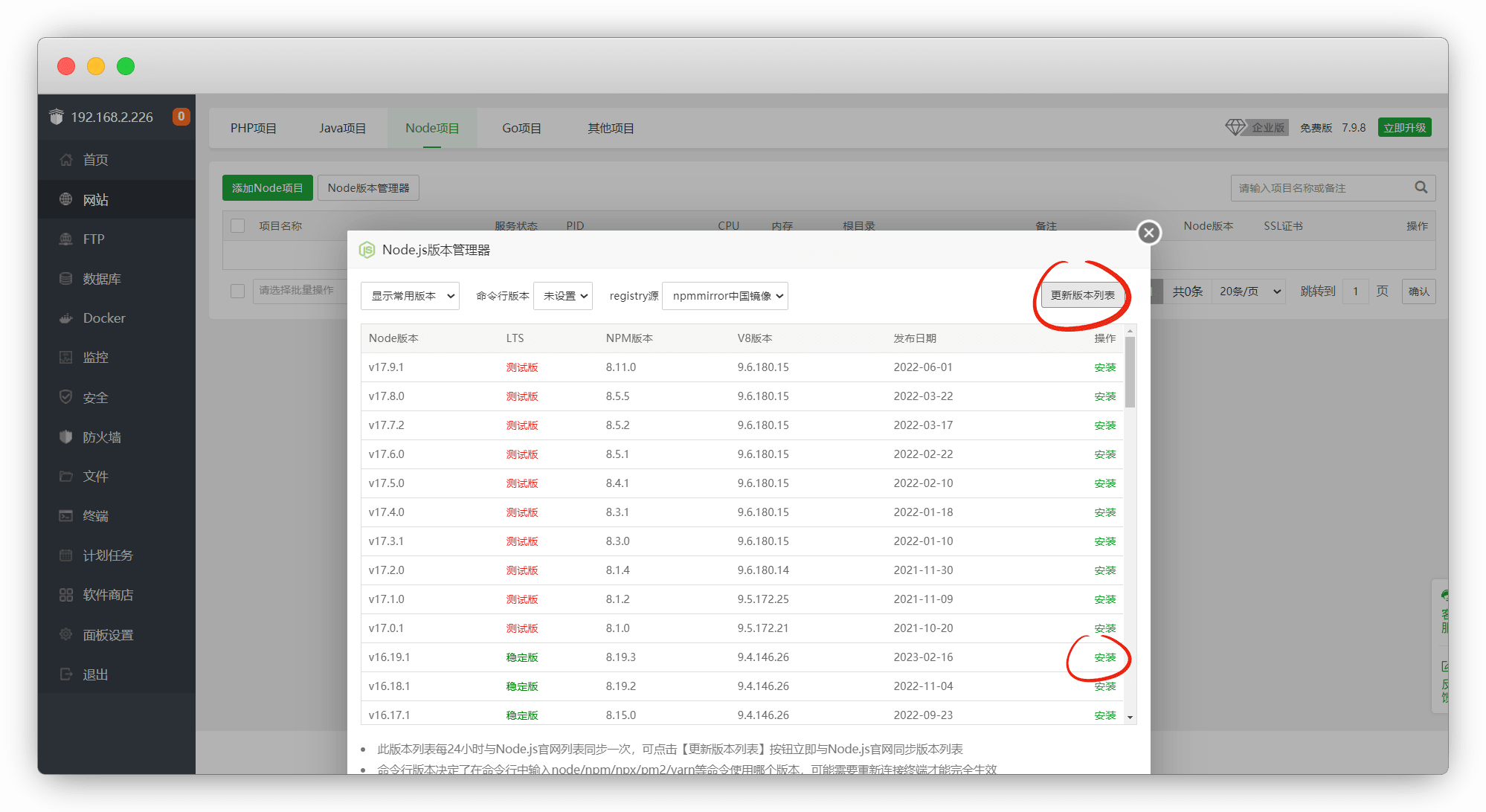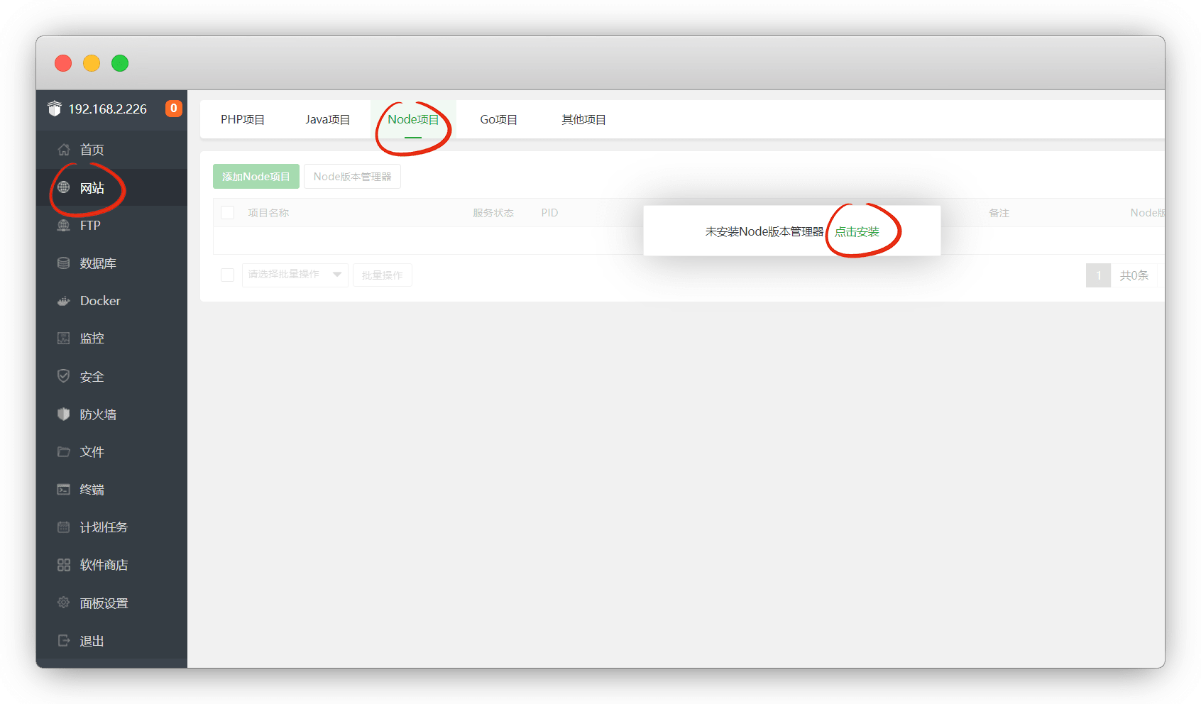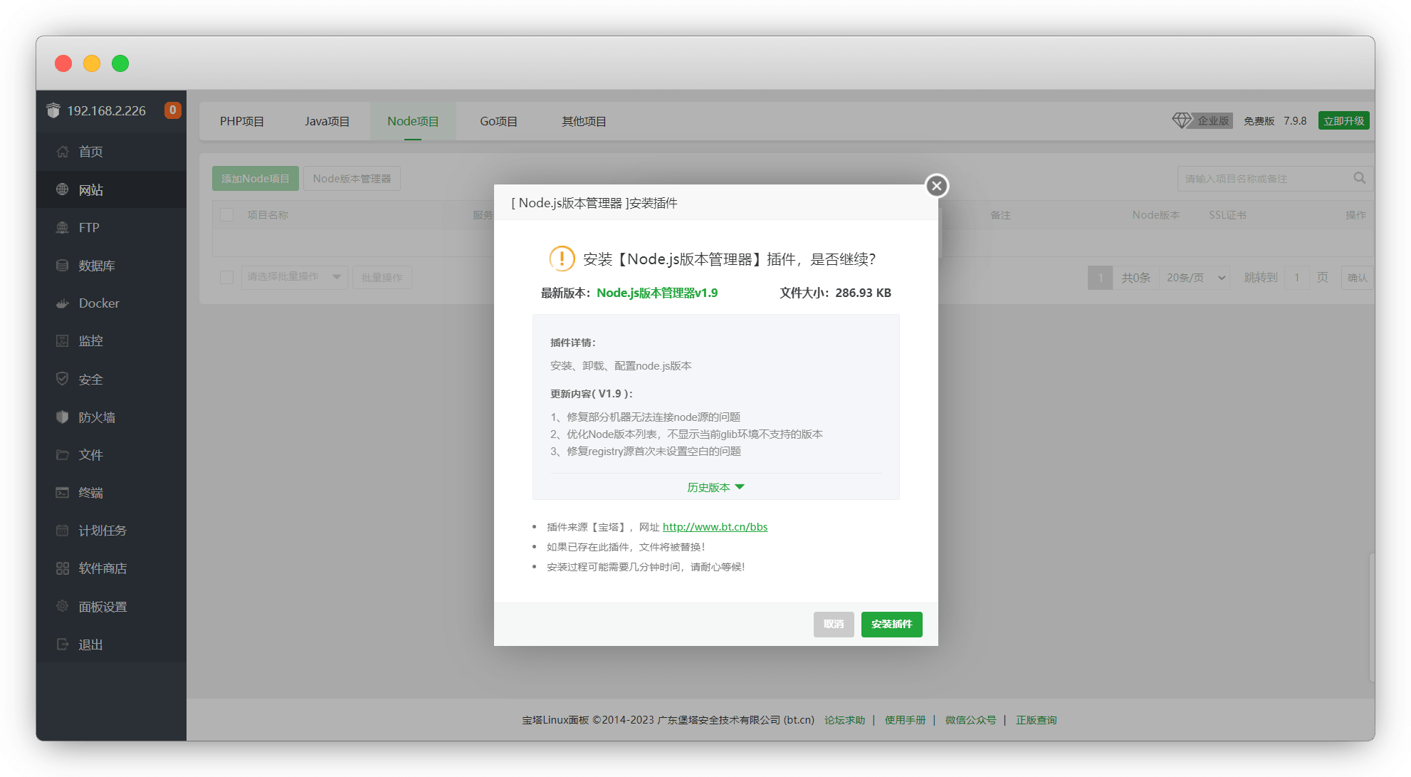 进宝塔-网站-node项目,安装node管理器