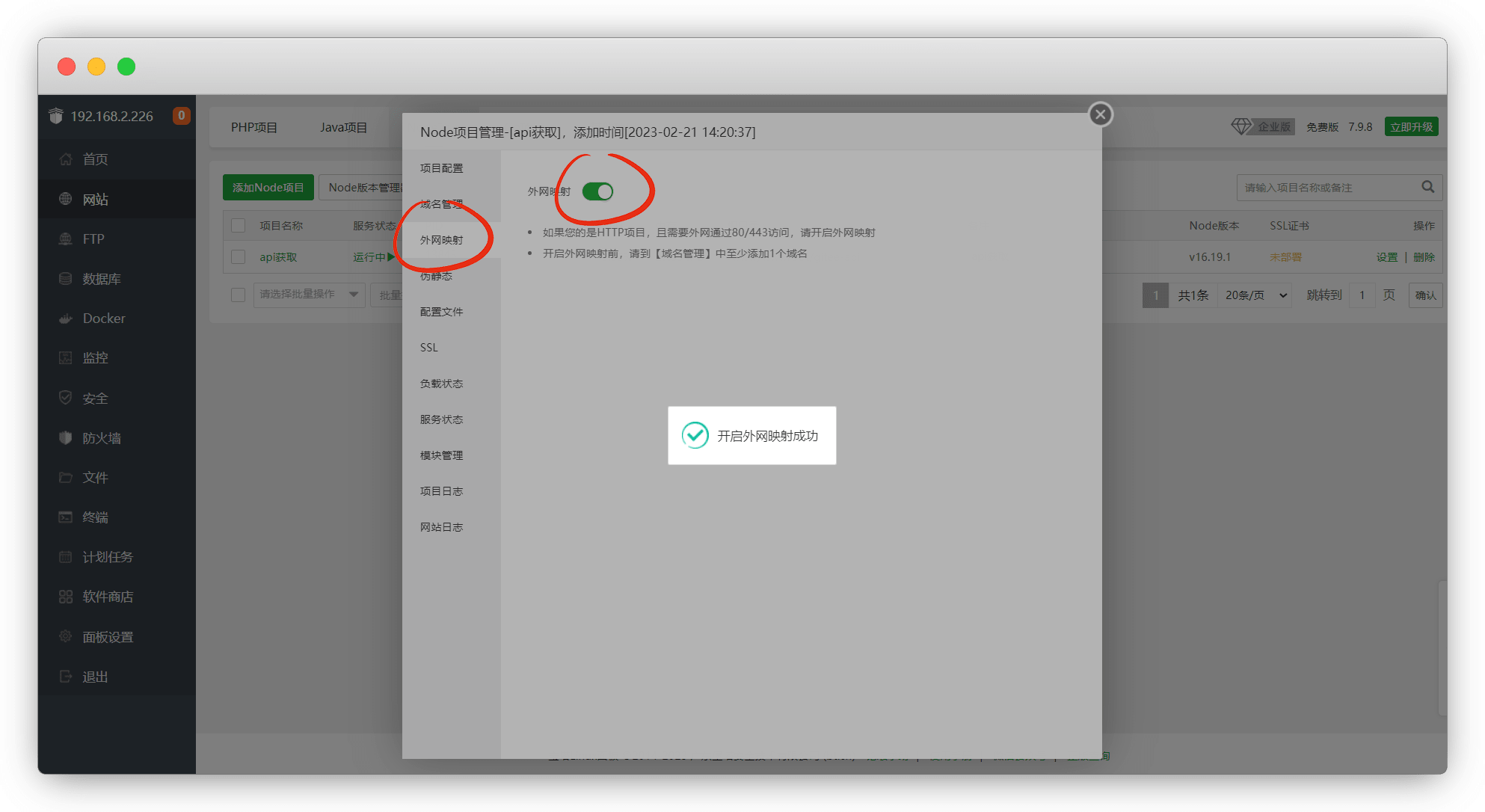 网站建议是开启https,先开外网隐射